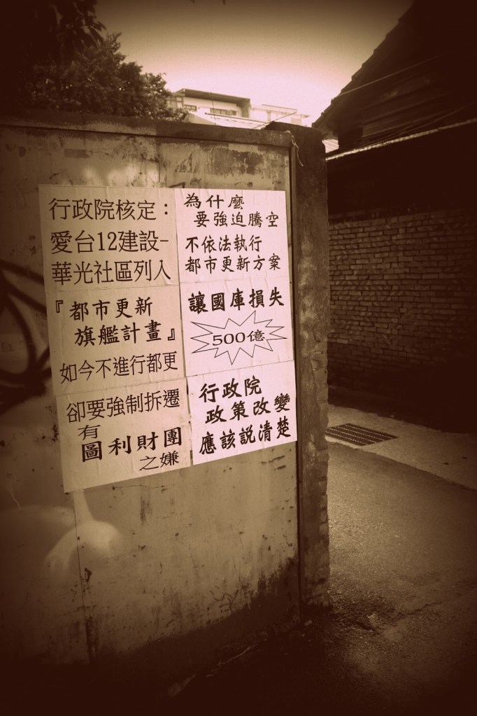 都市更新(Urban renewal),原本的用意是好的,但是,在這過程中,往往會產生人民與政府的衝突,華光社區的例子是重多都更案的其中之一,這些長多居住於此的社區居民,他們的要求真的不多,他們,只不過渴望能擁有自己的,家。