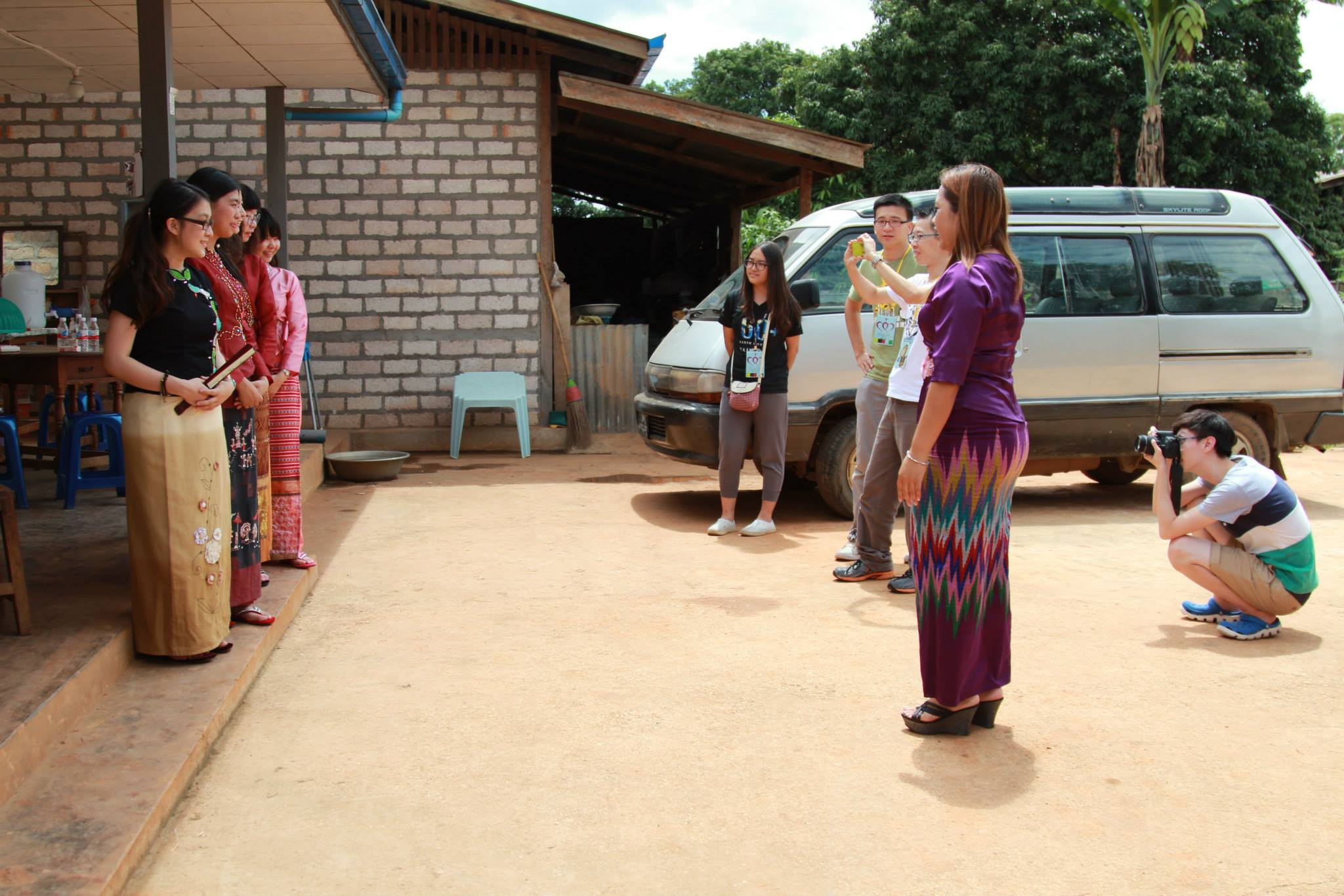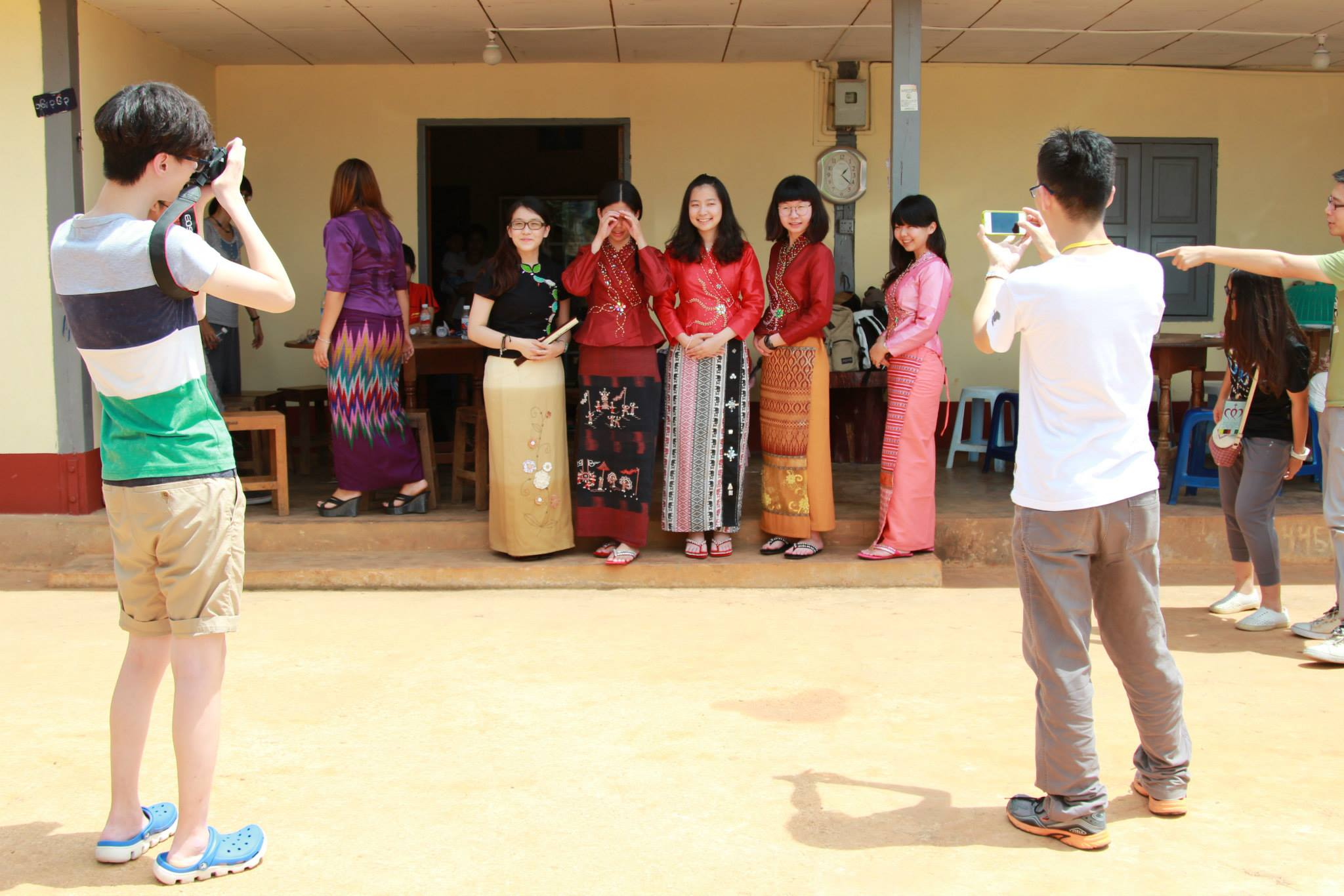某天服務隊的空檔,接待我們的老師非常熱情,邀請多位女生試穿沙龍,發現大家穿起來還蠻合適的!