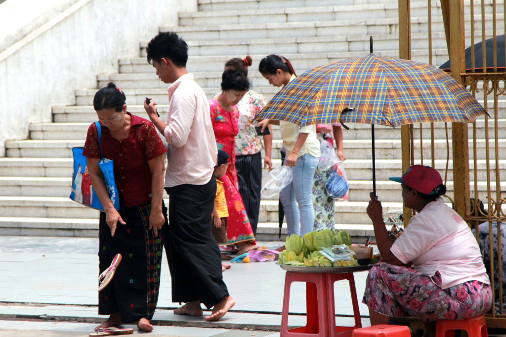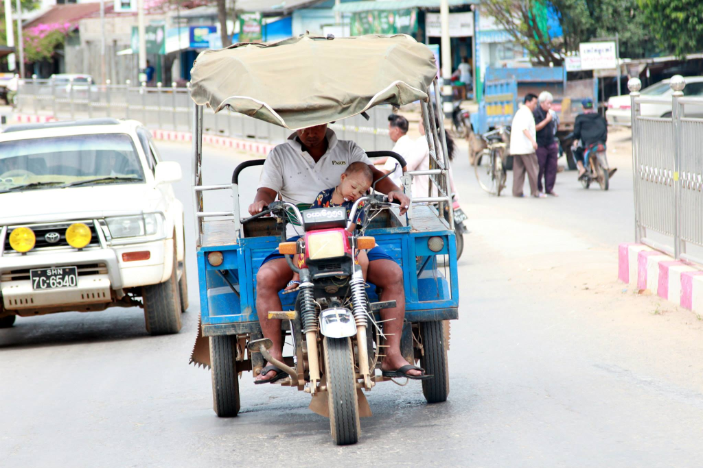車子開進市區,路上滿是騎摩托車的年輕人和穿著傳統「籠基」的男男女女(「籠基」緬甸語是 လုံချည်,英語是 Longyi,是緬甸人所穿的筒裙)。