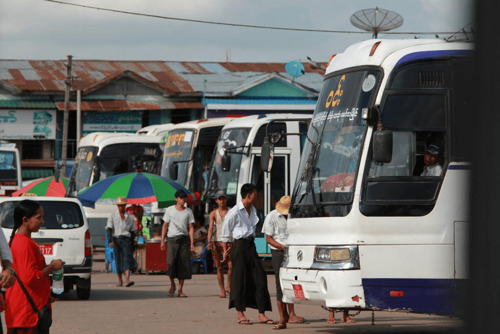 我們從緬甸南部的仰光前往緬北的臘戌,搭乘長途臥鋪巴士,全程約 14 小時,從傍晚上車,一路睡到隔天早上抵達。雖然路程很遠,但車子有冷氣、座位寬敞,途中還會停靠幾個休息站,整體來說比想像中舒服得多。窗外風景一路從城市延伸到鄉野,看著天色一點一點變暗,也是這段旅程中讓人難忘的片刻之一。