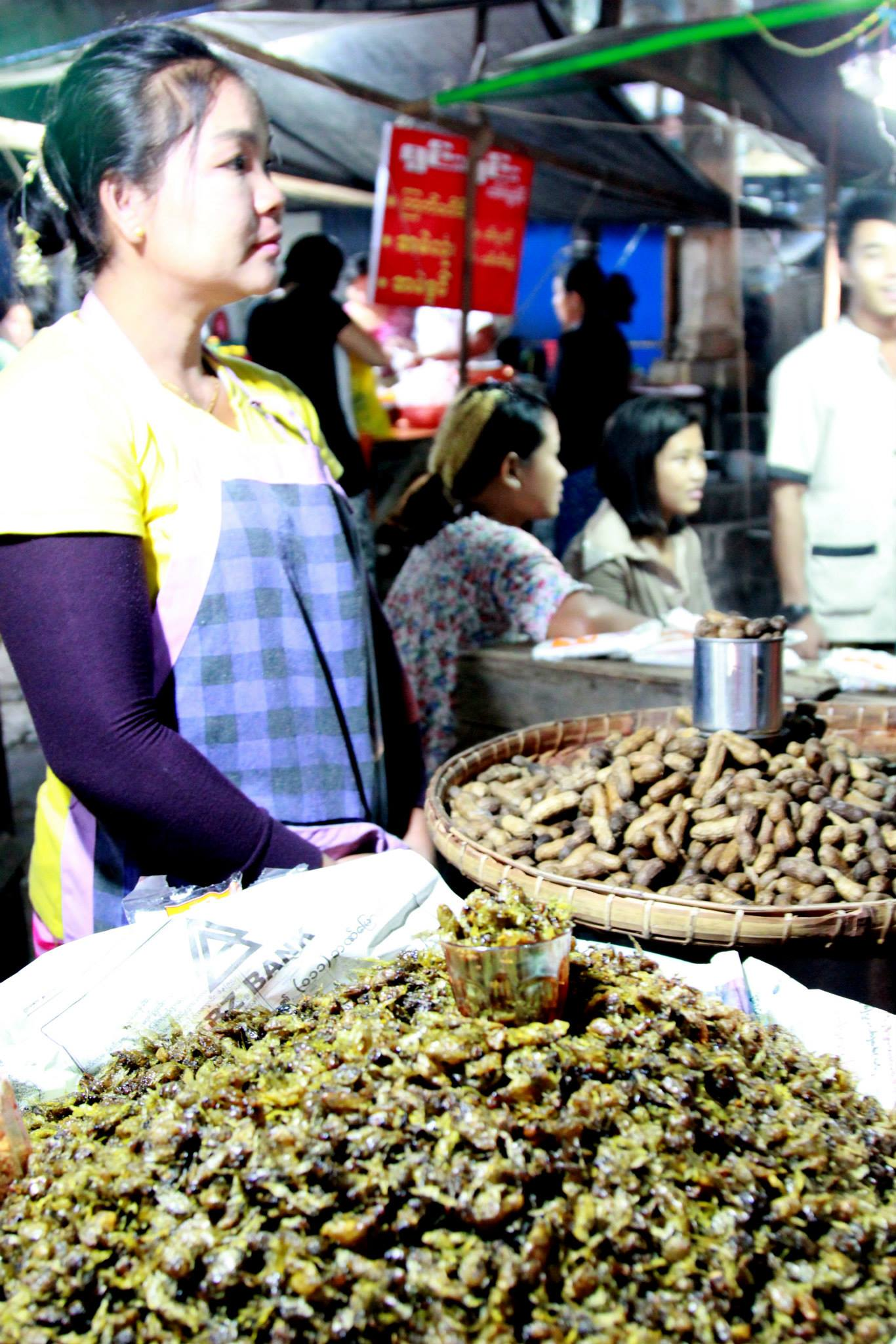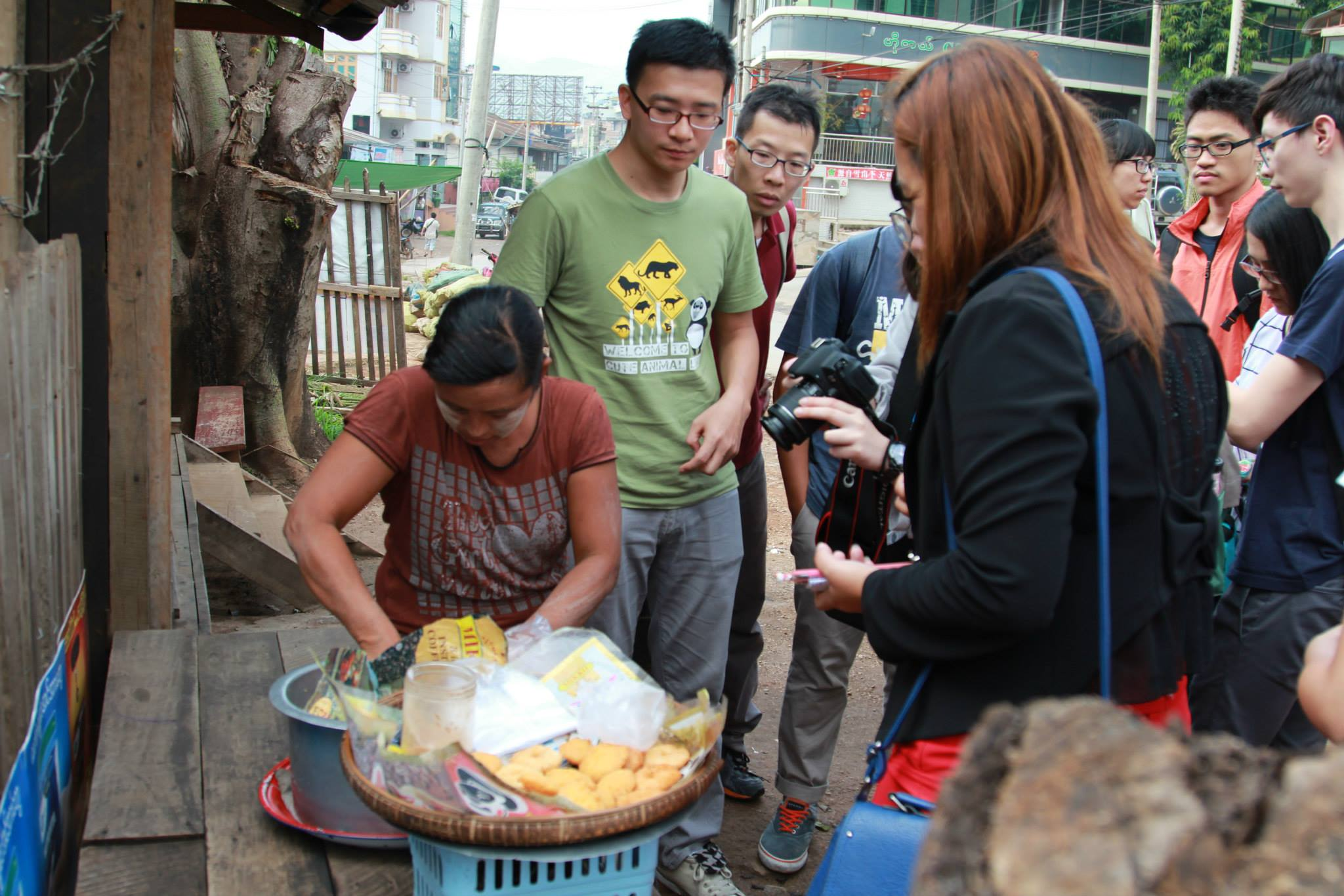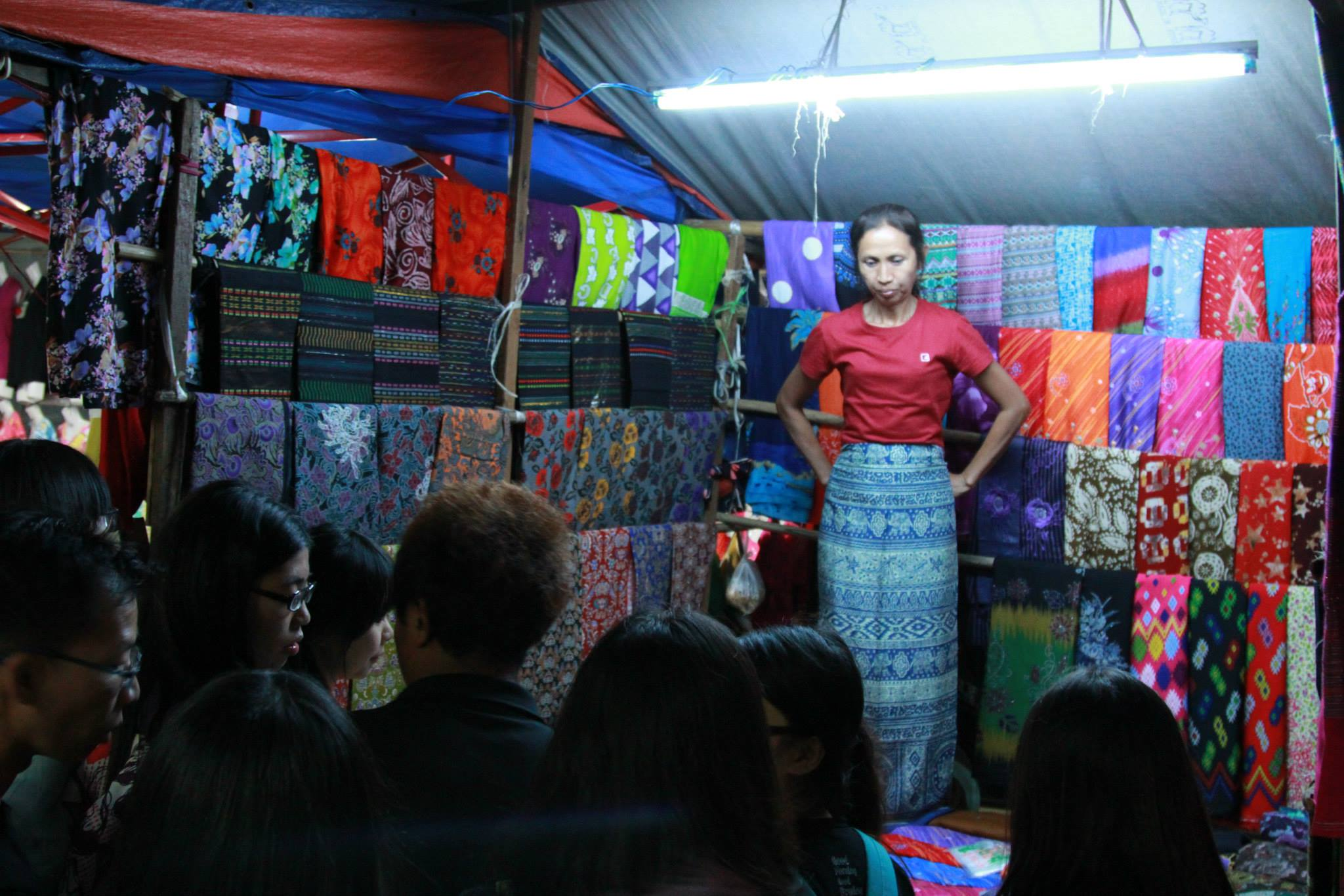 有一天我們去逛夜市,特別逛了緬甸傳統服裝沙龍的攤位,還有瞄到有在賣「蟲蟲」,但我們大家都不太敢吃哈哈哈!