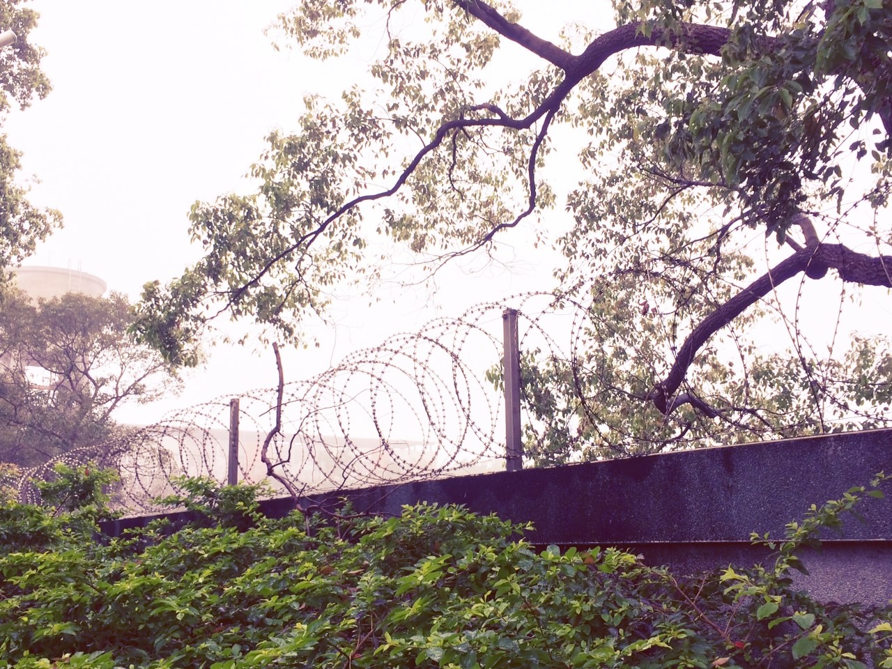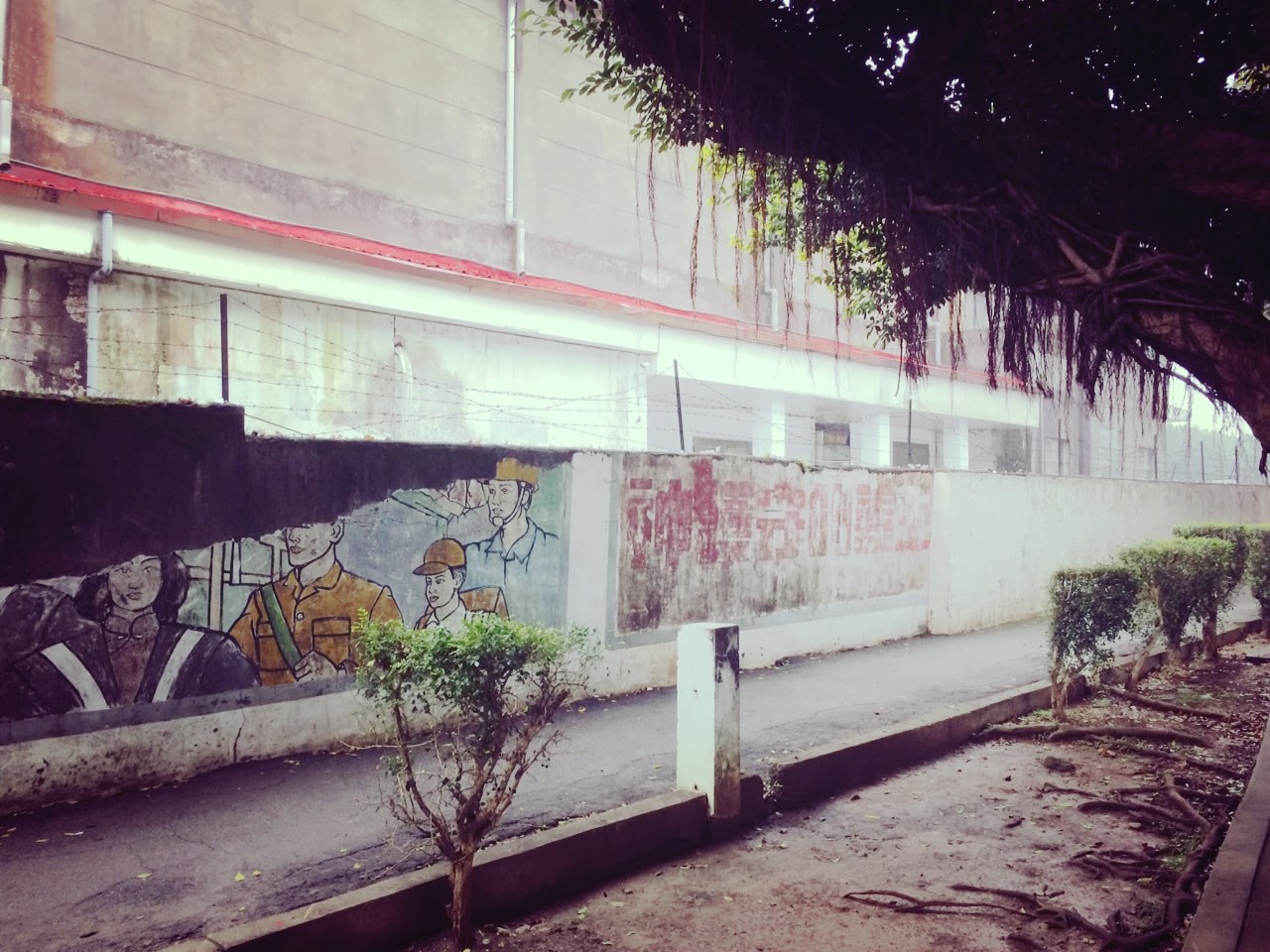 公園圍牆上,有著當年的反共復國標語和圖片,