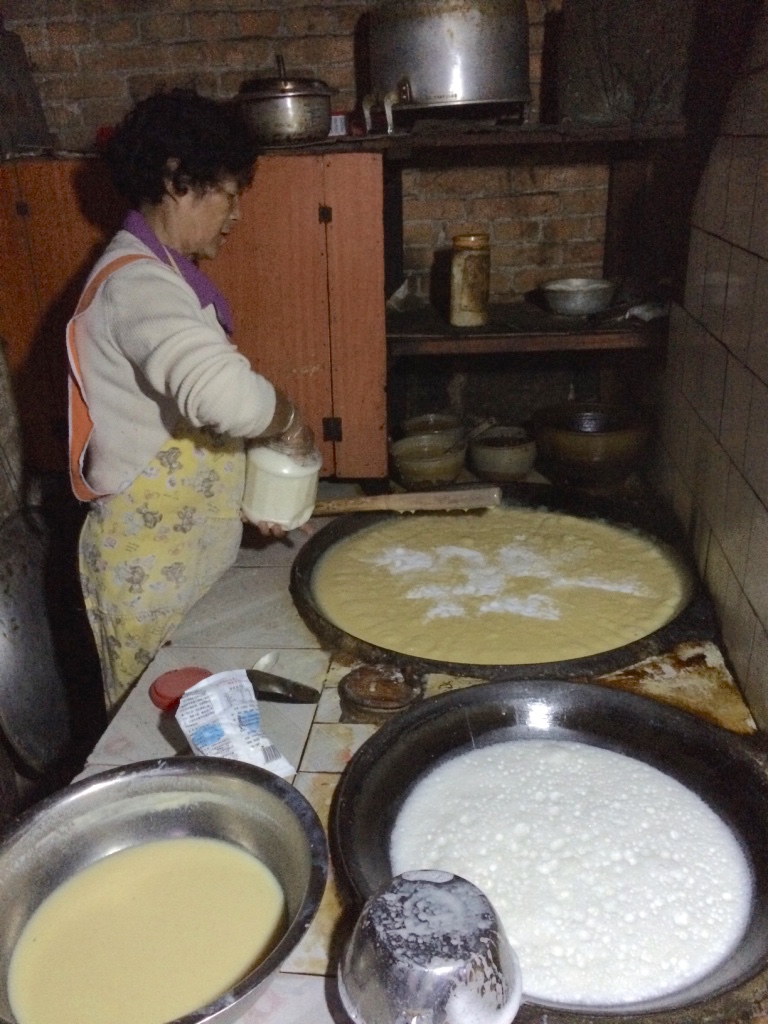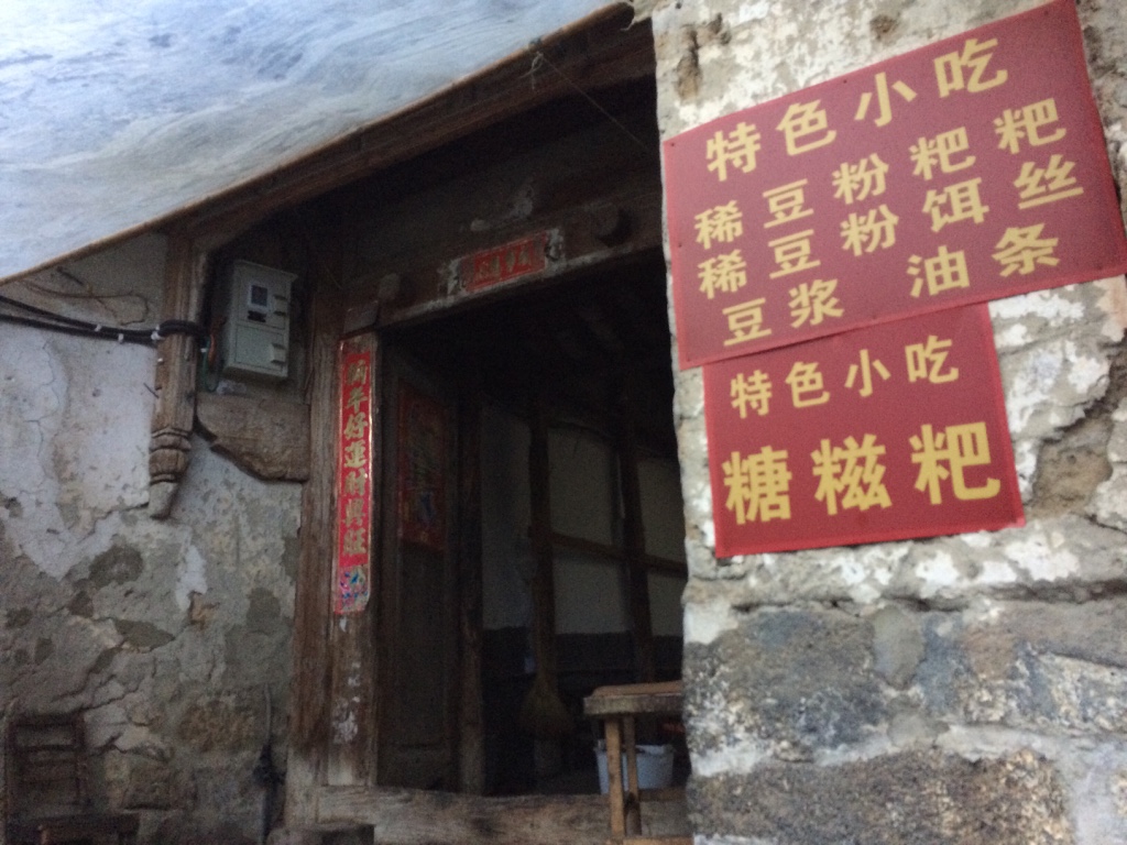 記得旅程中的一件趣事,有一天,在騰沖的和順古鎮,我一大早起床,就為了買一份稀豆粉粑粑帶著去搭車,後來還差點趕不上大巴,我就趁店還沒開的時候,跑進去問老闆娘是否能先做一份給我帶走,老闆娘人很好,讓我在旁邊看她製作的過程(見下圖)。