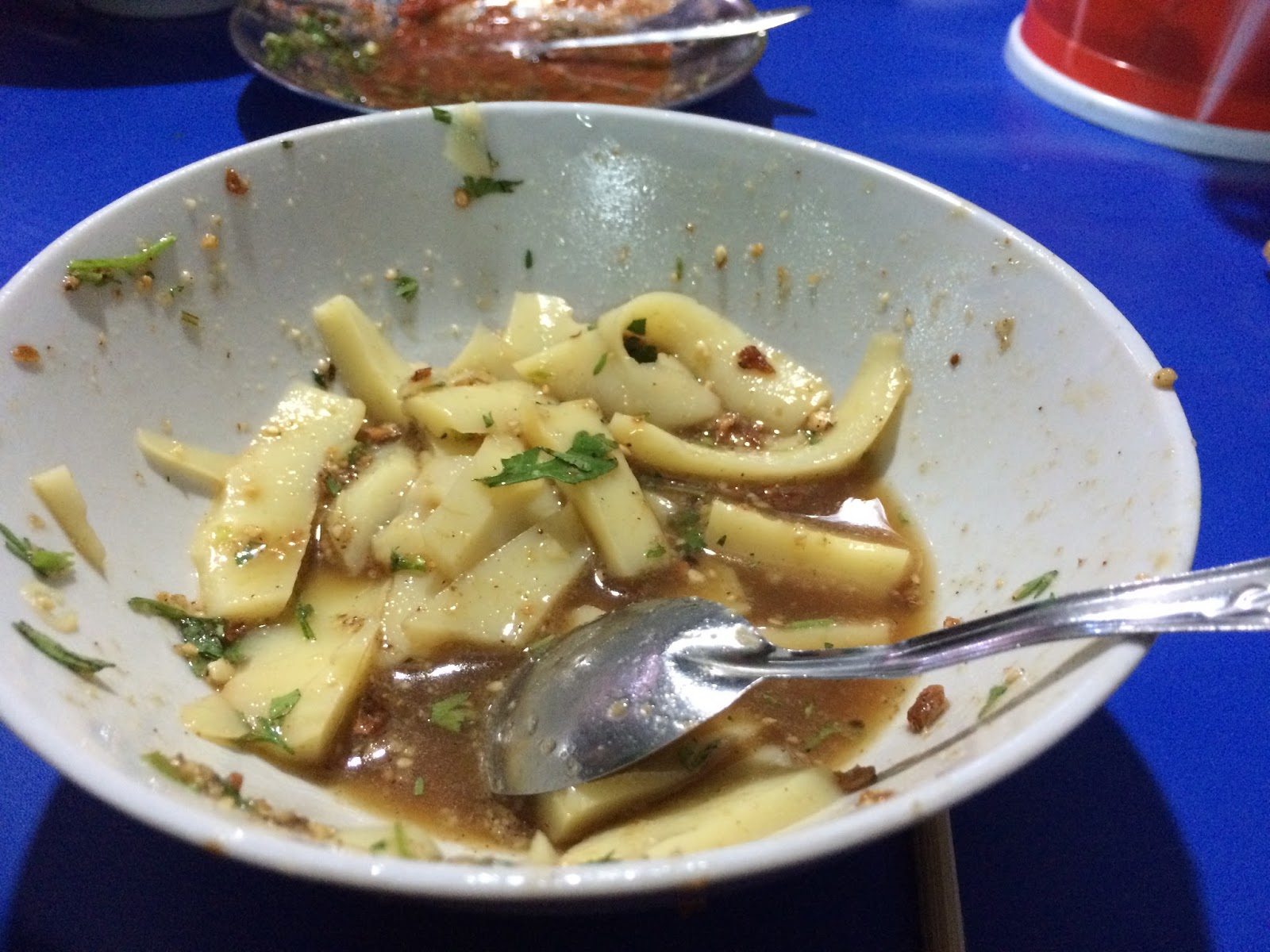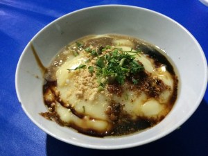 稀豆粉若是涼了,可以製作涼拌豌豆粉,酸酸涼涼也好吃(上右圖)!後來,2015年暑假,去雲南自助旅行時,更是圓了我想要大嚐特嚐雲南美食的機會(尤其是稀豆粉),特別在騰沖、滄源這些接近中緬邊境的地區,稀豆粉的攤販更是普遍。