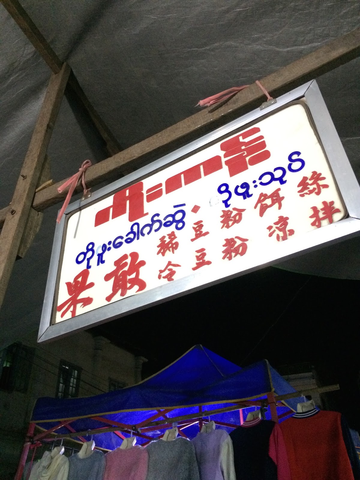 第一次吃稀豆粉,是2015年寒假,在緬甸臘戌的夜市(見下圖組)。第二次吃,是同一年回到台灣,在中和南勢角的華新街-緬甸街(之後就常跑去吃)。