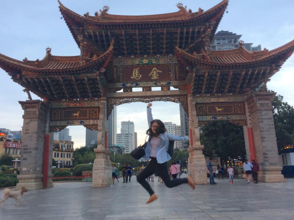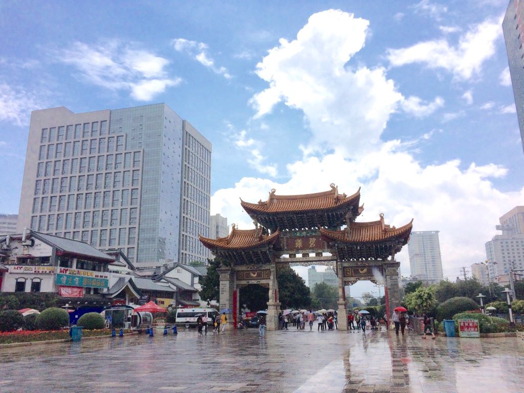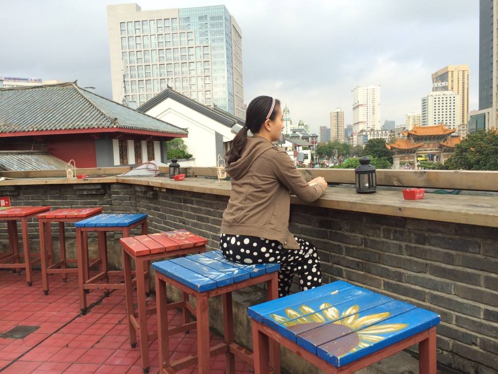 我們在昆明的住宿選擇位於雲南昆明市中心的「駝峰客棧國際青年旅舍」,地理位置非常方便,距離著名地標金馬碧雞坊步行只需幾分鐘,旅舍頂樓塔台可以直接看到金馬碧雞坊廣場。