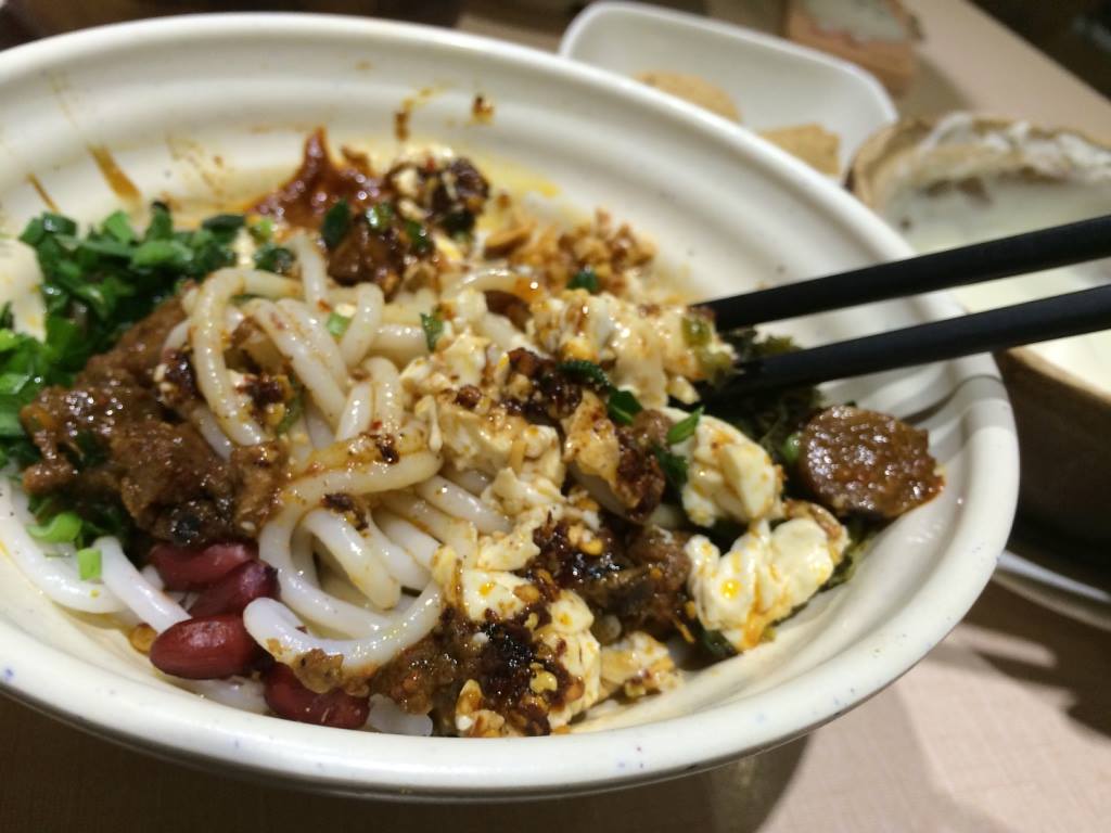 「德勝橋豆花米線」是我和朋友抵達昆明後的第一餐!聽雲南朋友說這是必吃的傳統小吃,米線的口感很Q、滑溜順口,再搭配現做豆花(吃起來有點像豆腐),湯頭也很香很清爽,不會過於油膩,裡面的配料像香菜和花生讓整碗米線多了幾分層次,真的非常好吃。如果之後有機會,我一定還會再來品嚐!