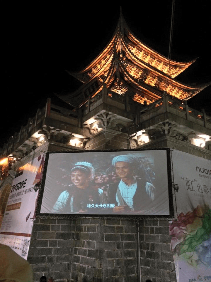 每天晚上八點古城的五華樓都會放電影《五朵金花》(1959),我之前看過一次,是一部有趣的電影!