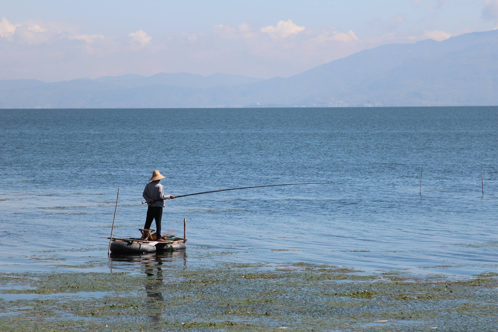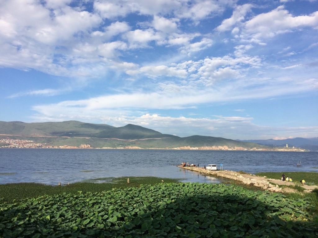 不過,站在湖邊看大片水草隨風搖曳,搭配藍天白雲,也是洱海特有的一種風景。