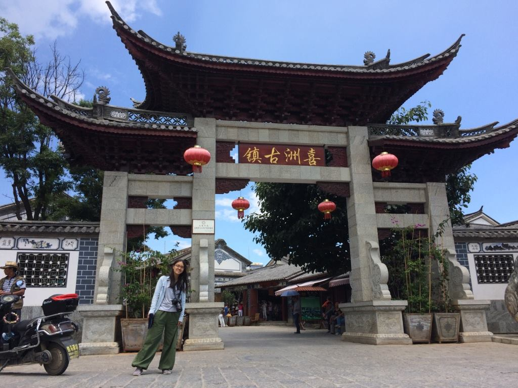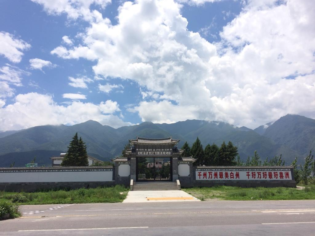我們從大理古城出發,騎電動車到洱海西北側的喜洲古鎮大概花費一小時(其實開車大概只需要 30 多分鐘),因為中途我們一直停下來拍照。我們只有在喜洲古鎮外面拍照,因為入內要購票,這天還要趕路,所以就沒有停下來入內逛逛,希望有機會再來!