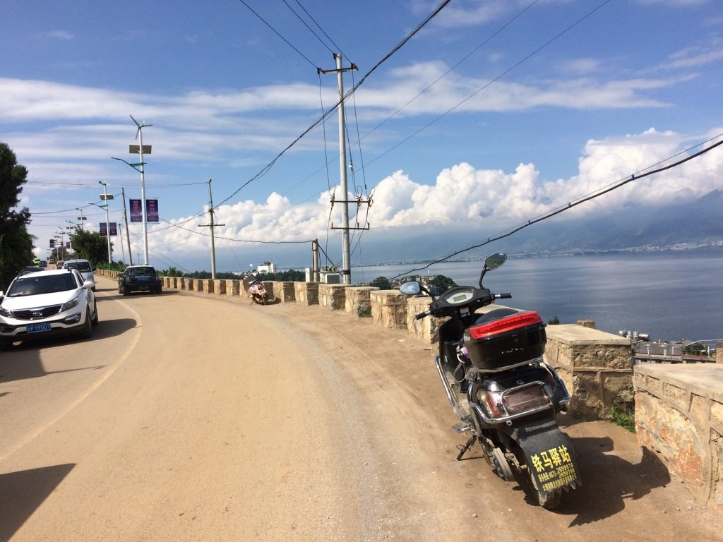 我們租的這台電動車好大一台而且很重,比我騎我阿嬤的 125 機車還要重,實在佩服我自己竟然騎著它、牽著它,環完了洱海。