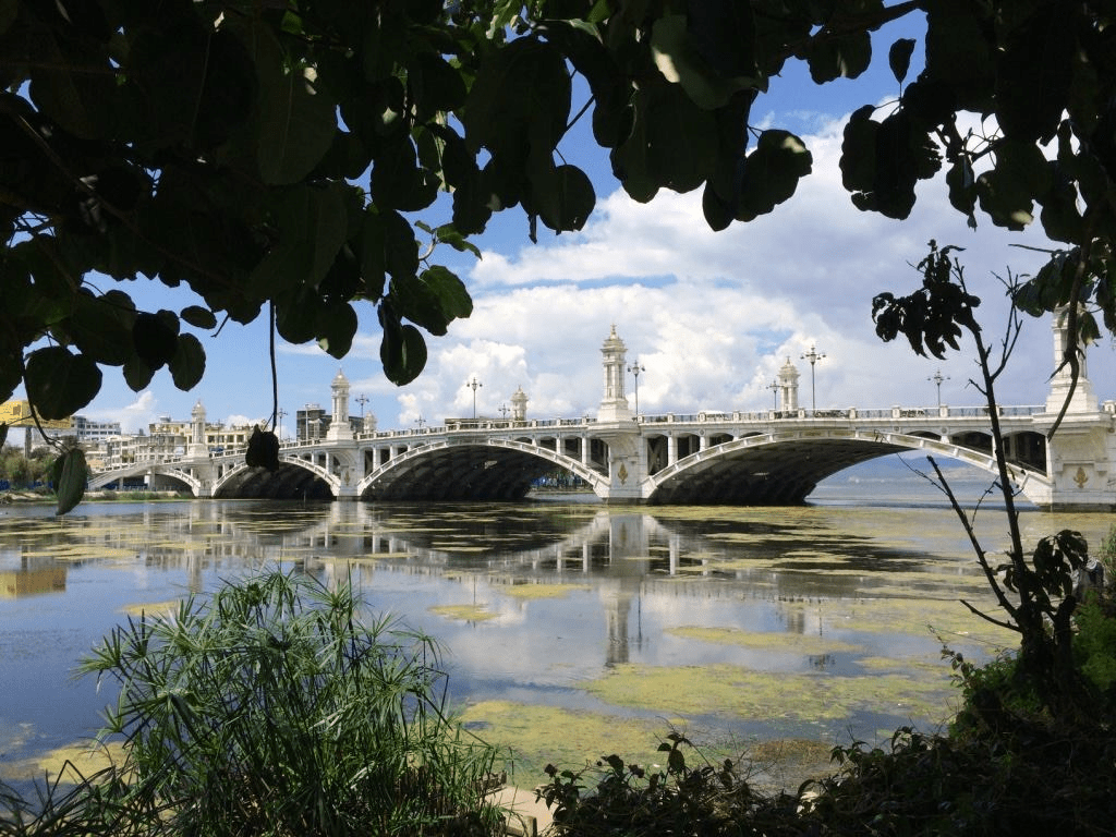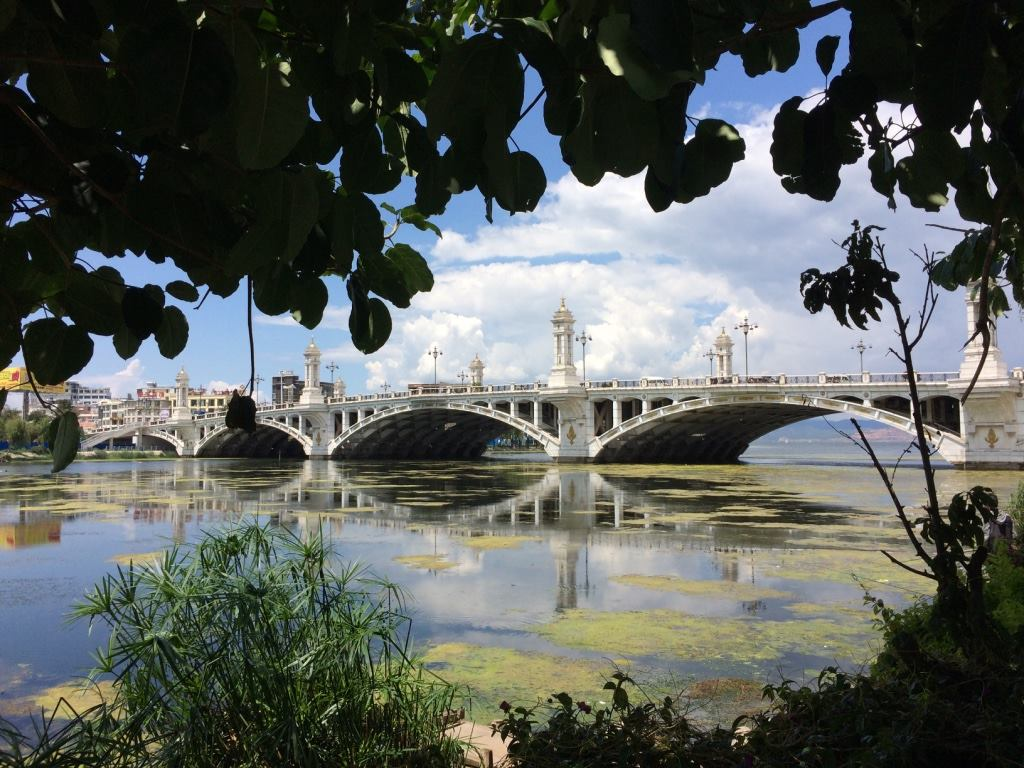 終於到了下午四點多,抵達洱海公園附近的興盛大橋,我停下來在樹蔭下拍了張照,大理下關的這座興盛大橋是 2008 年通車,連接大理市區和洱海濱湖路,橋身設計融合了現代工藝與白族傳統元素。