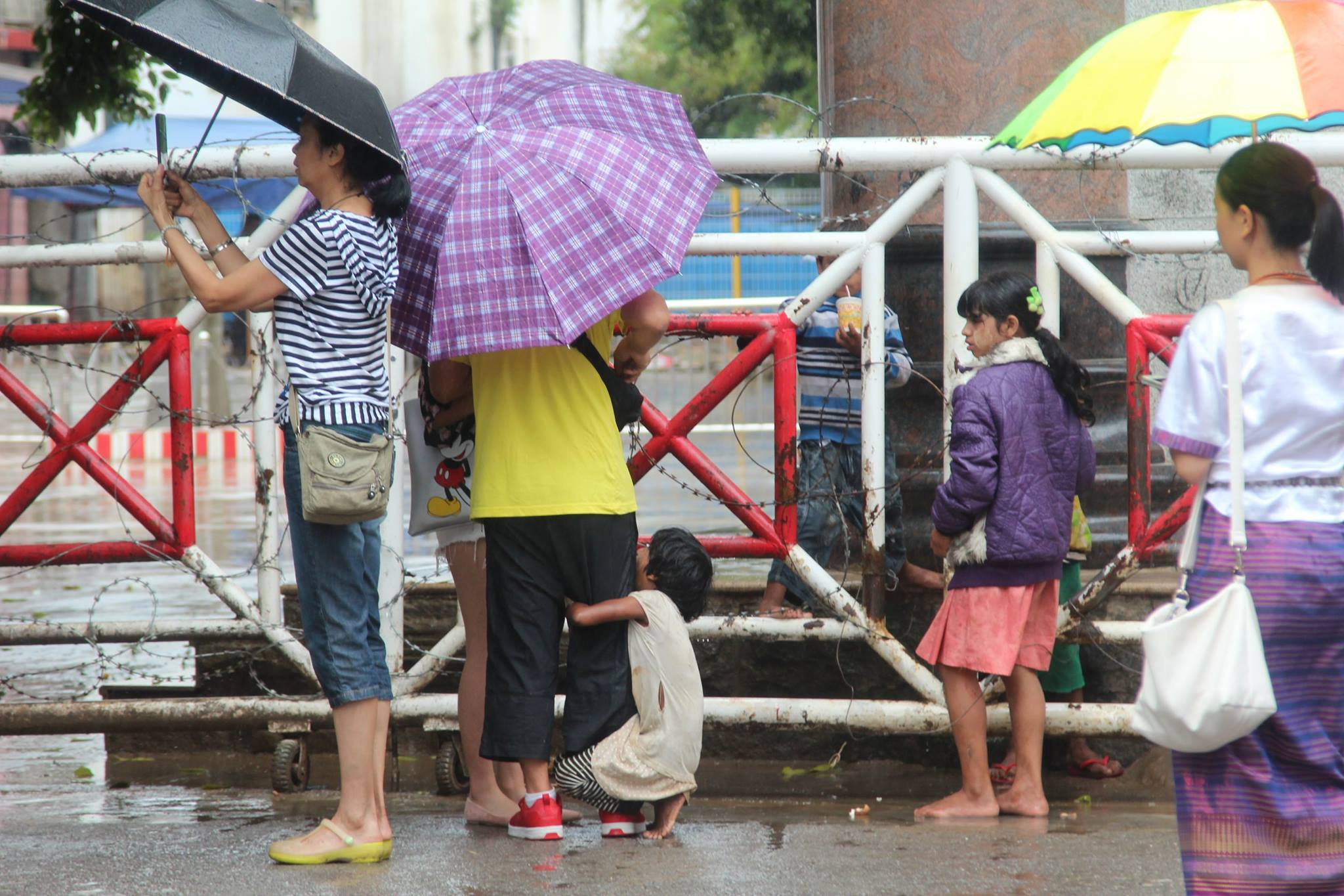 走了一段時間,終於看到姐告口岸了,看到許多人撐著雨傘排隊等待通關。