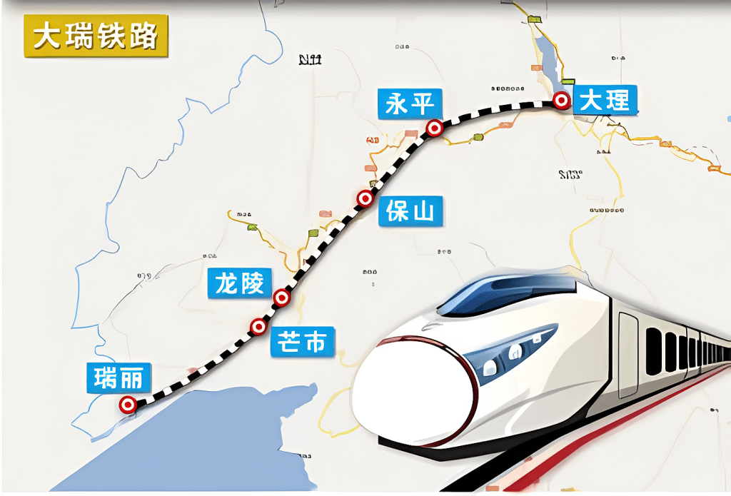 *備註:「大瑞鐵路」是中國雲南省的一條鐵路,也是昆明至新加坡的泛亞鐵路西線的組成部分。線路起自大理市,與昆楚大鐵路、大麗鐵路相連,經保山市,到達中國與緬甸邊境的瑞麗市,並計劃與緬甸鐵路接軌。