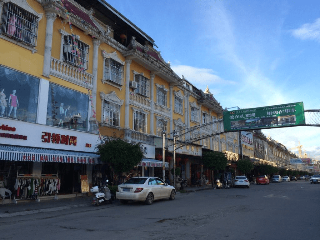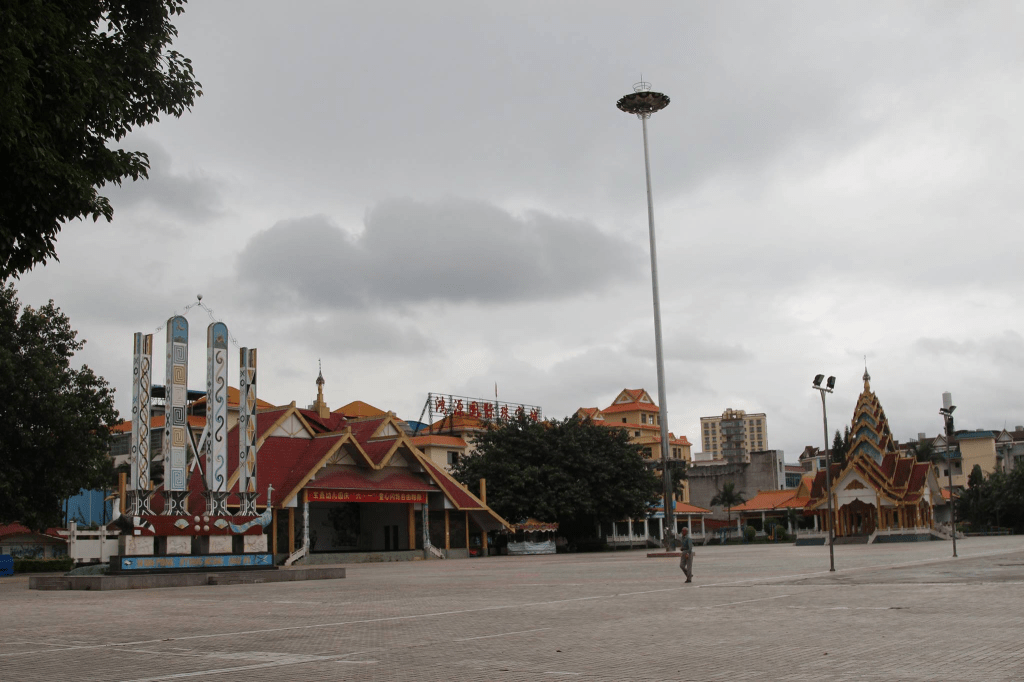 趁天黑前,我走到瑞麗江廣場晃晃看風景,來回各需走 40 多分鐘,但是我很喜歡走路,反而不覺得累。我發現瑞麗的馬路上汽車不算多,非常空曠,走在路上其實不用怕被車撞。