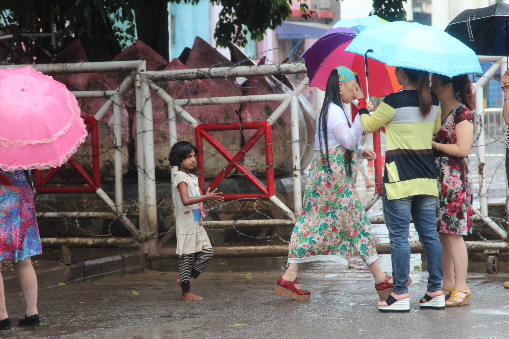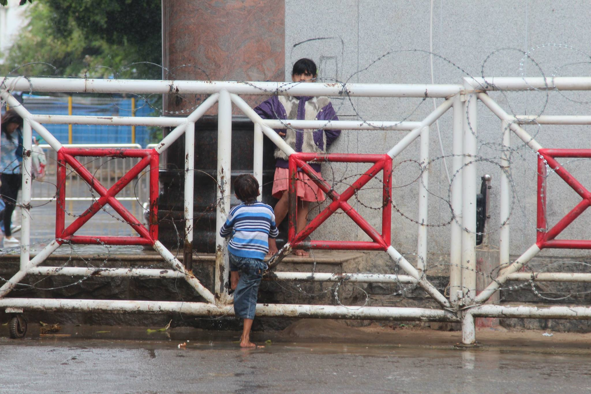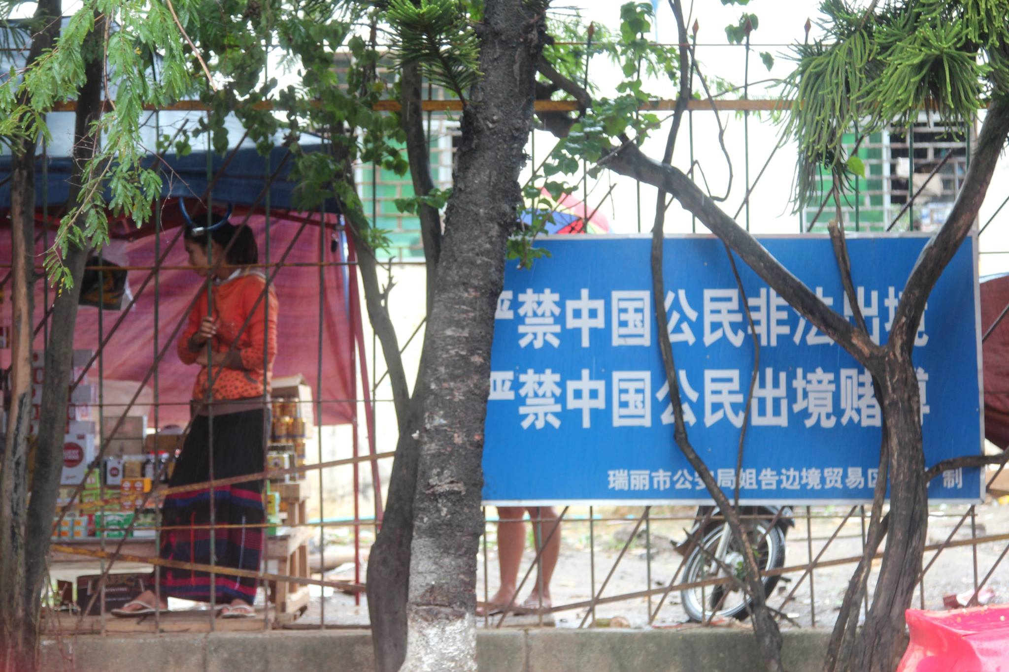 在這裡許多人每天都會在中緬兩邊跑,瑞麗姐告口岸旁的邊界就是一道柵欄,雖然有立牌寫「嚴禁中國公民非法出境」,但我有看到一些緬甸人在圍牆另一邊設攤和中國人交易,在口岸旁邊也有一些緬甸小朋友,直接從柵欄穿過到中國來,又穿過去回緬甸,一直拼命向觀光客要錢。