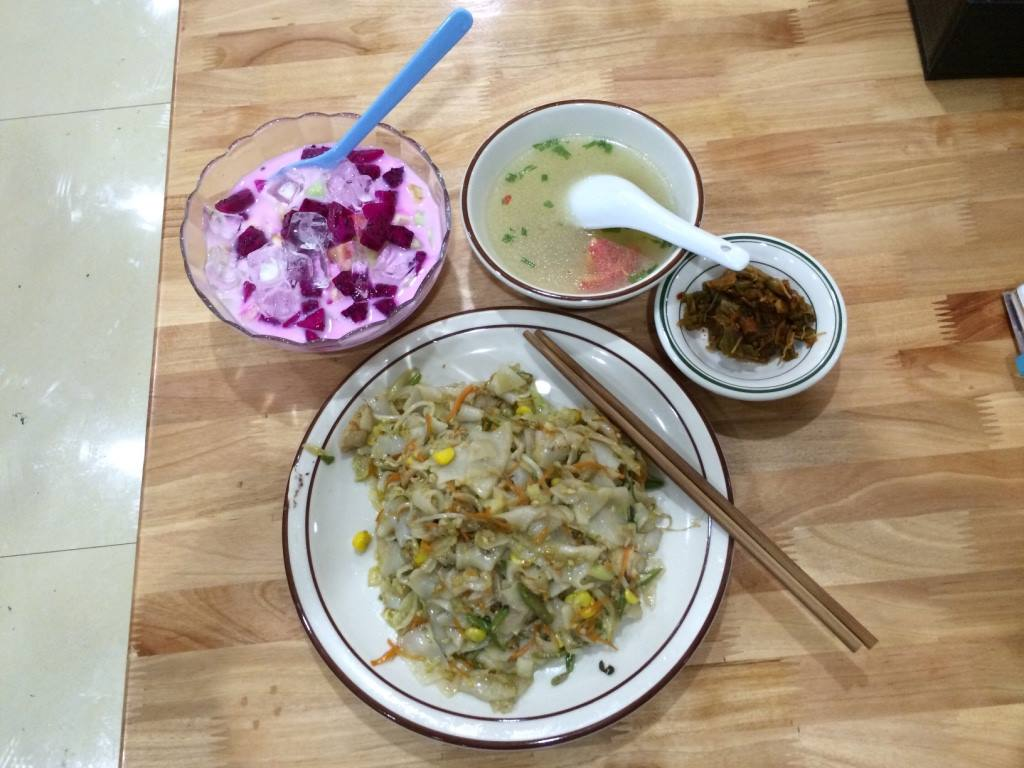我這兩天在步步冷飲店點了原味泡魯達、水果泡魯達、炒餌塊、炒卷粉,點餐送緬式酸辣湯和小菜,這樣加起來 20 元人民幣(2015 年價格),吃得很飽的超滿足,我這幾天都是中午下午趕行程沒吃東西,晚餐吃多一點,但這樣餓肚子很值得,因為晚餐超好吃!