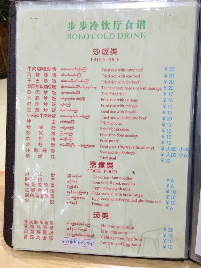 出發瑞麗之前,就在網路上看到這家「步步冷飲店」,一直想要朝聖品嚐美食,果真我後來覺得太好吃,連續兩天都來吃晚餐!