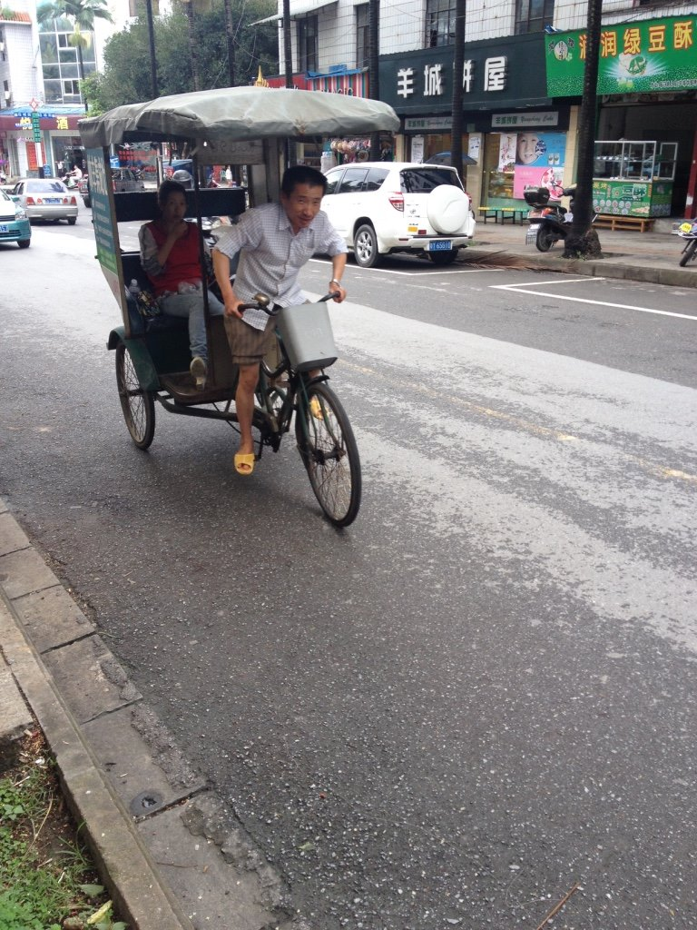 在瑞麗街上,看到好多這種三輪車,車伕看起來騎得很累。
