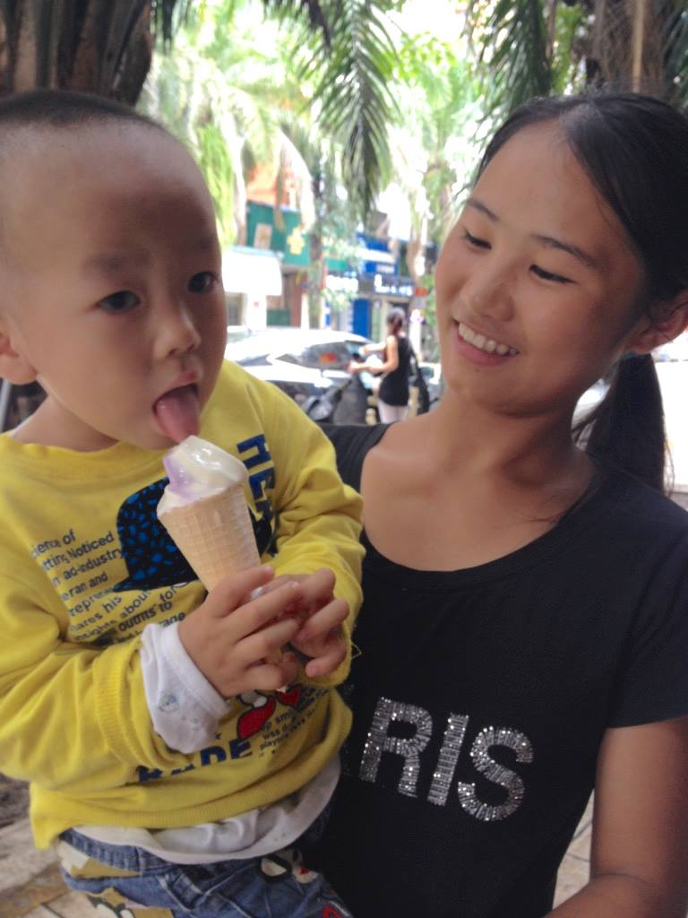 一走進學校,就看到一位少女抱著可愛的弟弟,小孩雷達再次開啟,我就開始跟他們聊天,這位 15 歲少女是雲南施甸人,因為家庭與經濟因素,和家人一起到緬甸(中緬邊境)的甘蔗廠打工,所以沒有機會唸書,旁邊是她表妹,在瑞麗讀書受教育、學習樂器,對比之下兩位女孩的生活環境相差甚多。