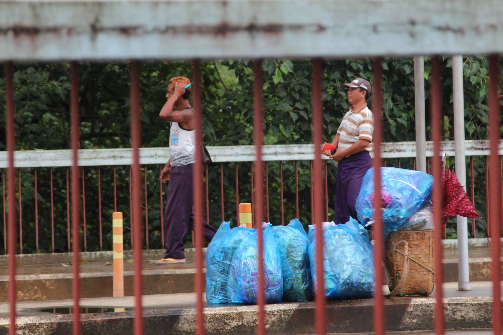 如果不是中國這邊有站崗的邊防武警,還有對面緬甸那邊掛著國旗、移民局的辦公室,真的很難想像自己腳下已經跨過了國界。兩邊的邊民進出自如,騎著摩托車、自行車,自在穿梭。