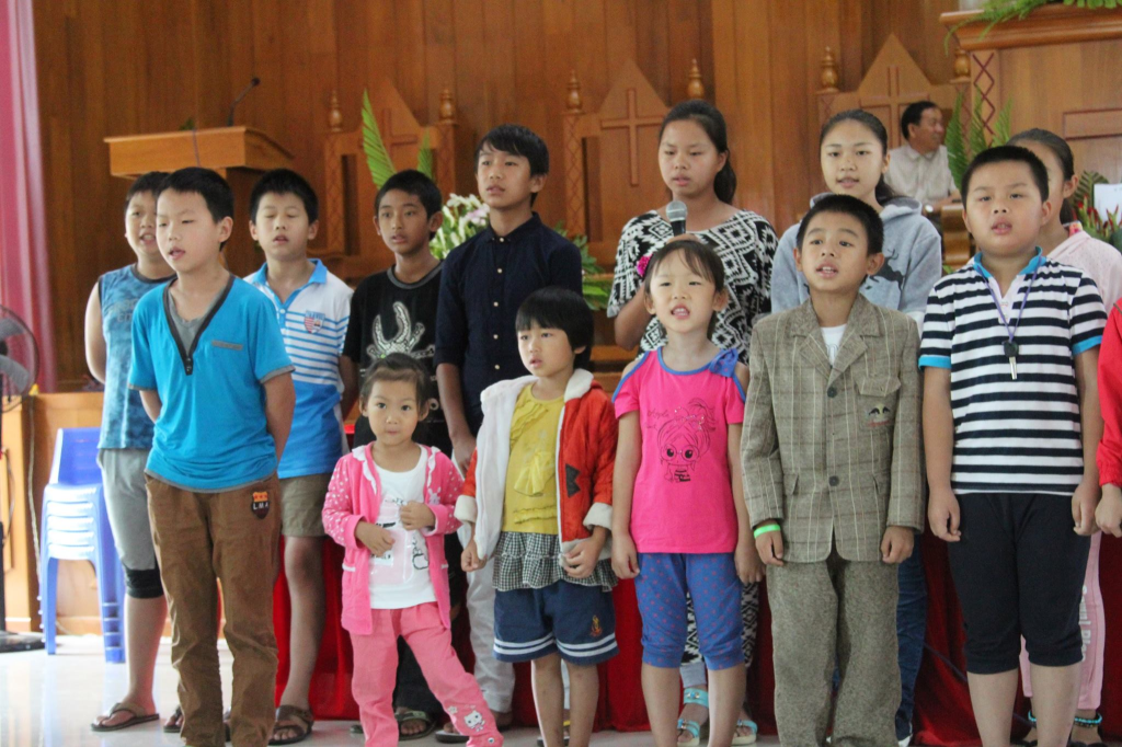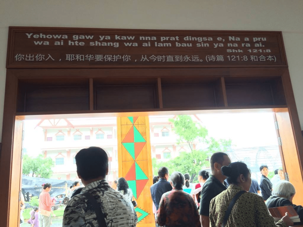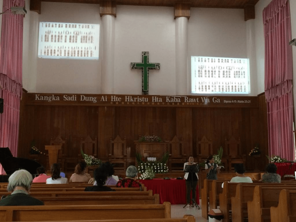 這是一間景頗族教會(教堂建築裡可以看到景頗文,最早是由美國浸信會傳教士在 19 世紀晚期發明),不過我參加的剛好是中文禮拜,當中我最喜歡主日學小朋友們的獻詩,太可愛了!
