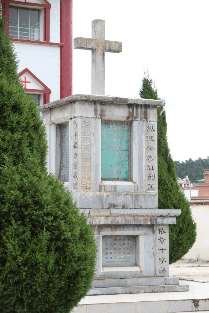我會想要去青華基督教堂,是因為裡面有我想看的傳教士富能仁紀念碑,我問了佤族大姐,她跟我說這地方在農村裡面,不太好找,連她都不知道,但我就是有一股堅持,想要去看看這座紀念碑,看了網路的介紹說,碑上有中文、英文、還有傈僳文(少數民族傈僳族的拼音文字)。