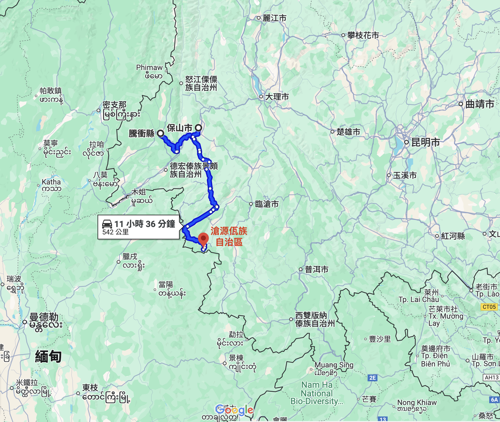 我只好開始思考各種解決方式和可能性,原本我想說那天就不住在保山,直接再坐車到滄源(車程約 10 小時),所以我就打電話到客運站問,但得知了保山到滄源每天只有一班早上 8 點的車,這下好了,真沒地方住了……