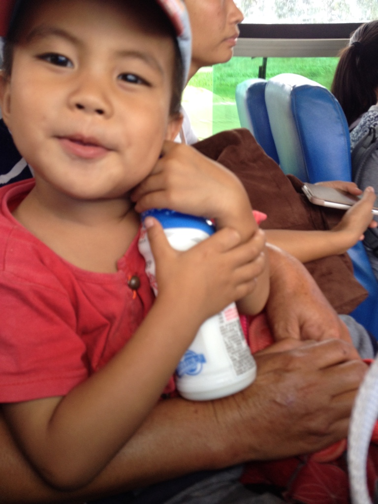感謝主,開往農村的這一路上並不無聊,雖然車子晃到不行(還好我沒暈車),但車上剛好我旁邊坐了一位可愛弟弟還有他的奶奶,跟弟弟玩了一小陣子,我還非常不要臉地跟他們合照!