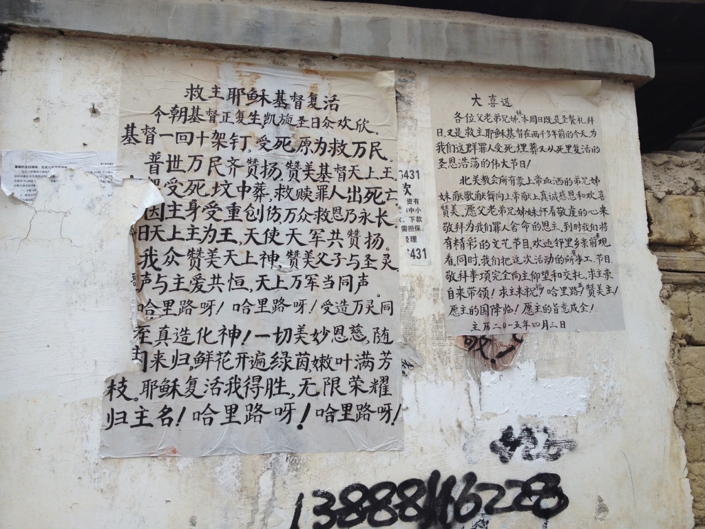 我搭上小小台的 12 路公交車,穿越塵土飛揚的地段、車子因農村裡的地面不平而上下左右震動不停,路途中有經過一間三自教會聖光堂。