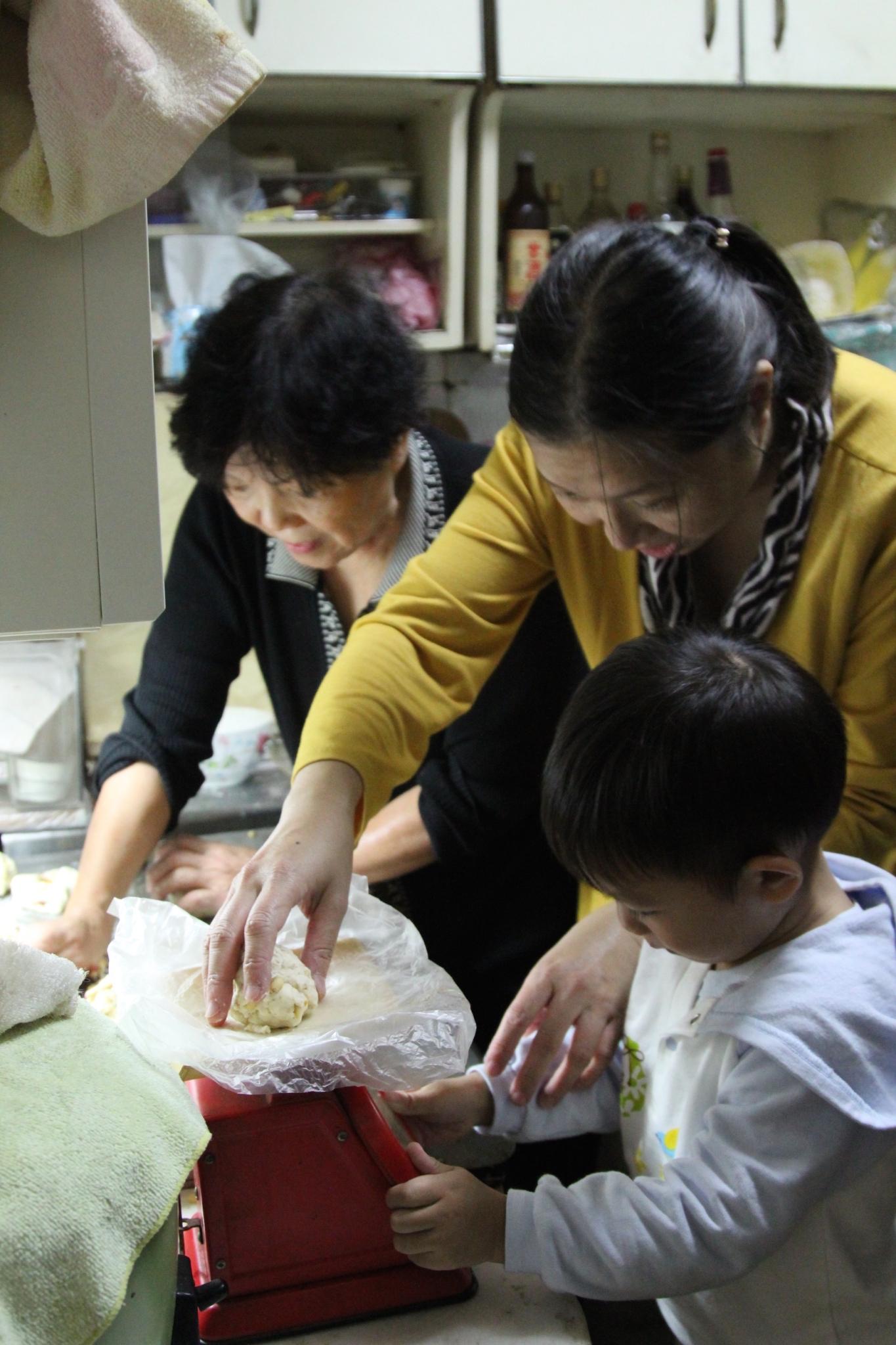 展區三是饅頭的塑形過程,前面的步驟是初步將麵團揉合與秤重(平均每顆饅頭重量),這裡是準備要拿去蒸之前的塑形,會決定饅頭出爐後的造型,這個步驟每次我媽都會被阿嬤唸,覺得她做得太醜哈哈哈哈(阿嬤講話總是很直接)!