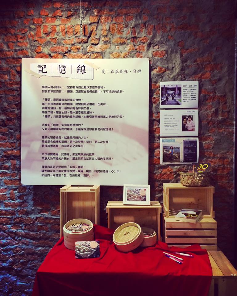 2016 年母親節前夕,一位朋友詢問我跟我妹是否有意在她經營的親子手作空間舉辦展覽,剛好我們兩位都十分感興趣,於是,我人生中的第一場策展就在當年的母親節期間,跟我妹共同策劃這場特別的展覽《手心母親節特展:記憶線—愛,在蒸籠裡,發酵》。