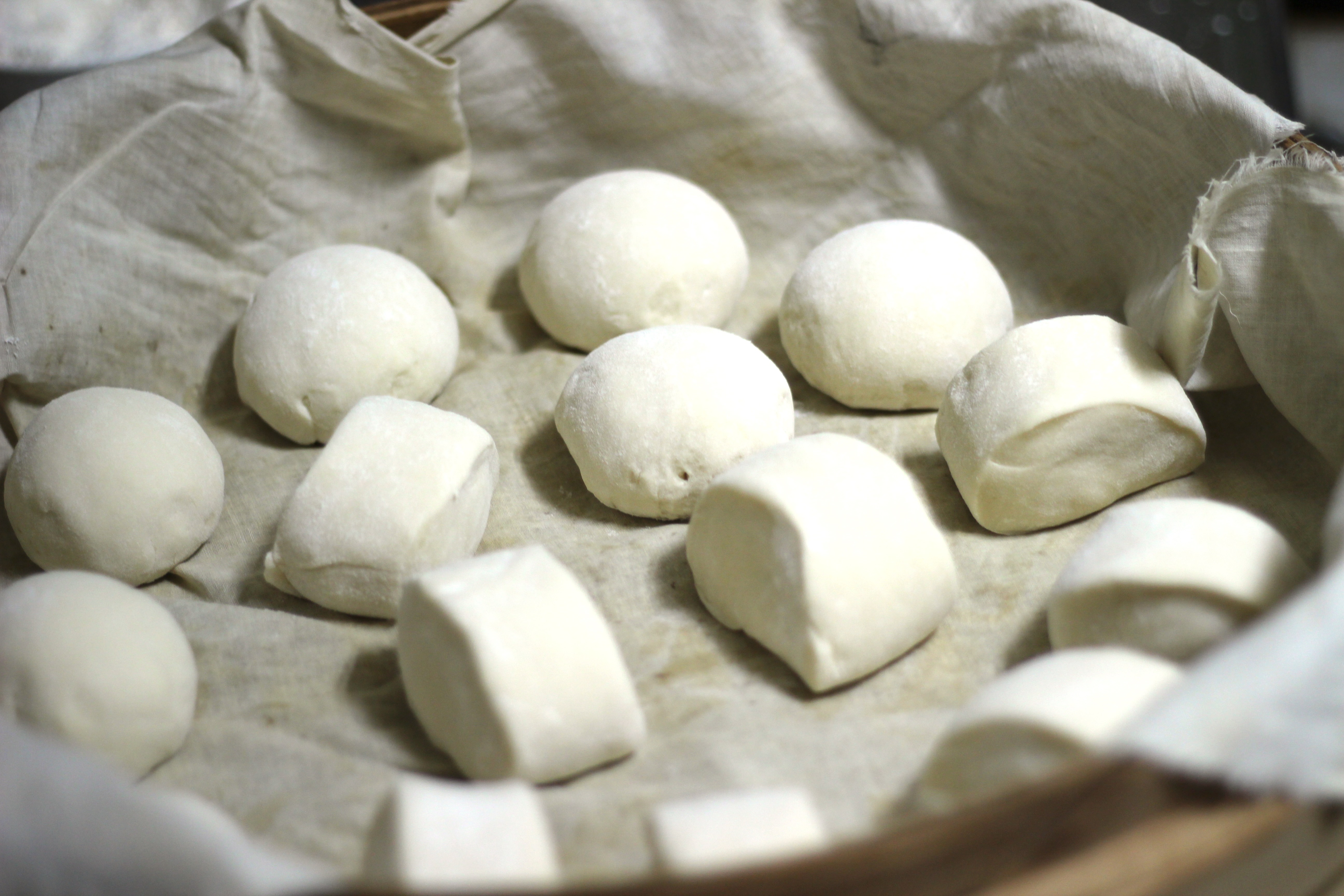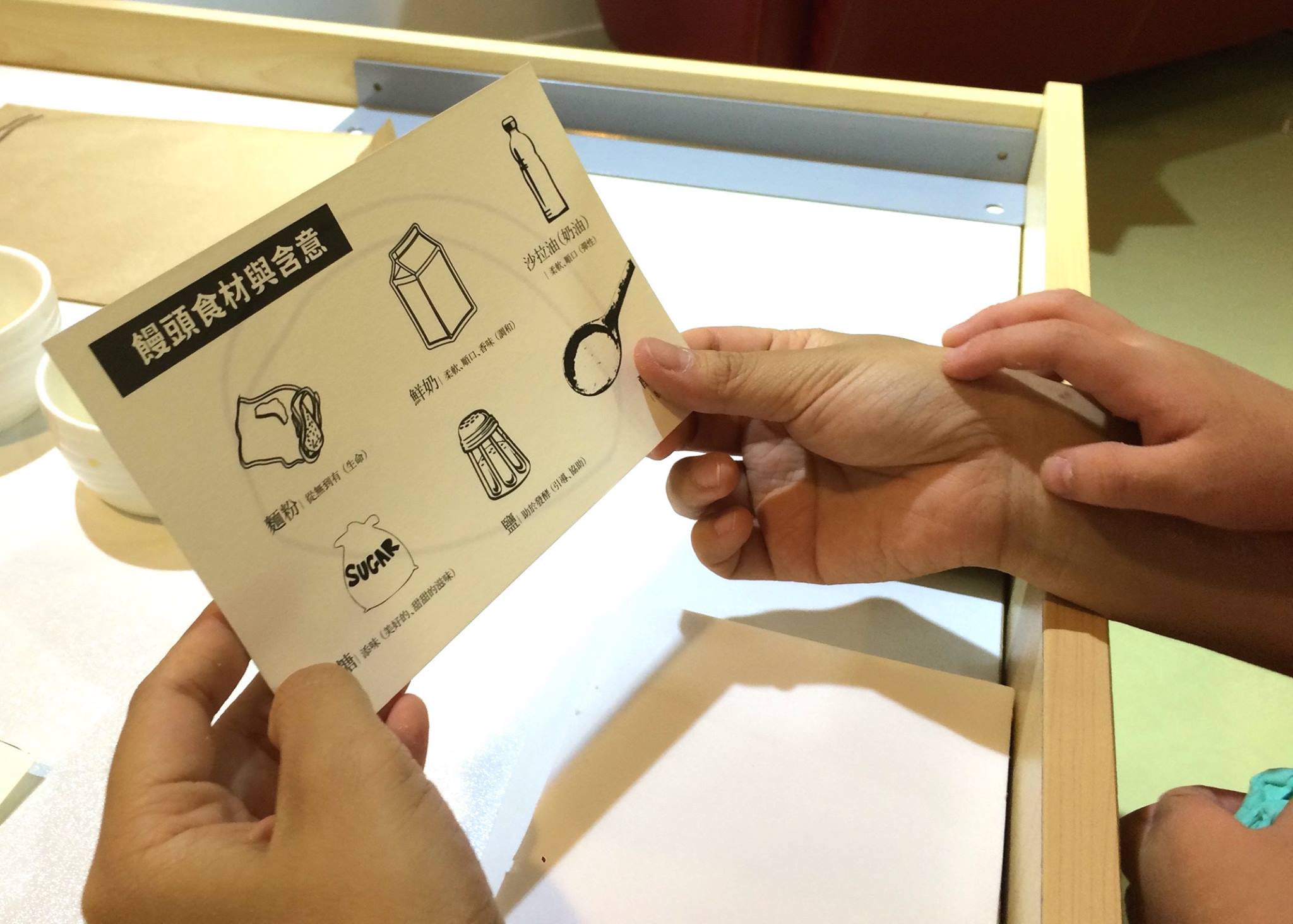 展區二是製作饅頭的第一次發酵過程,揉麵團的過程會進行初步的塑形,並在這個階段產生第一次的發酵,需要注意的是,每顆饅頭的麵團必須秤重,以平均每顆饅頭的重量,這個步驟也會影響後面塑形出來的饅頭外觀尺寸大小。