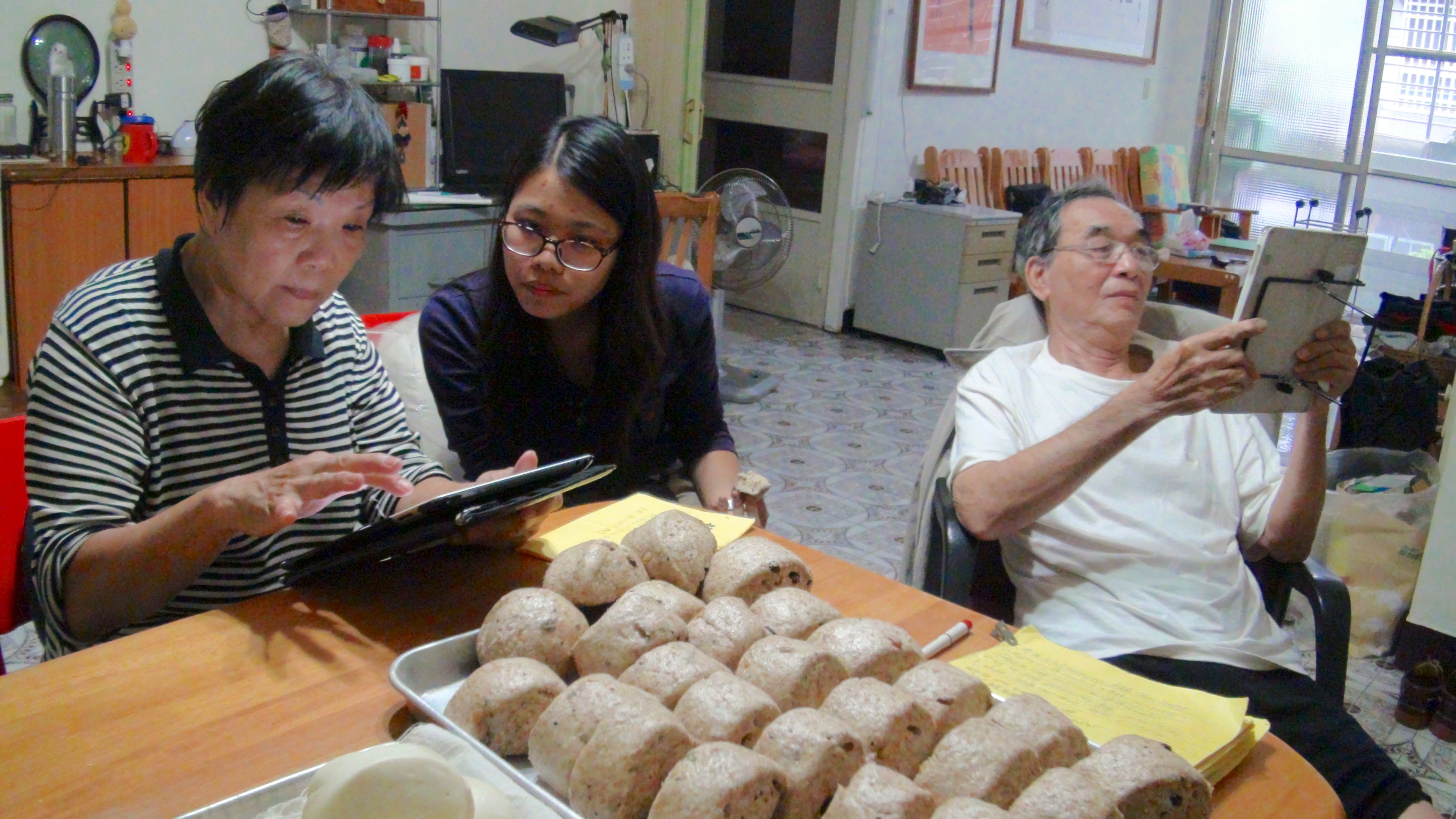 我們在展場內循環播放我製作的饅頭紀錄片,這部紀錄片是我在 2013 年某堂課程的期末作業,當時我邀請了同組的同學一起來拍攝阿嬤做饅頭的過程,大家吃了超多饅頭!