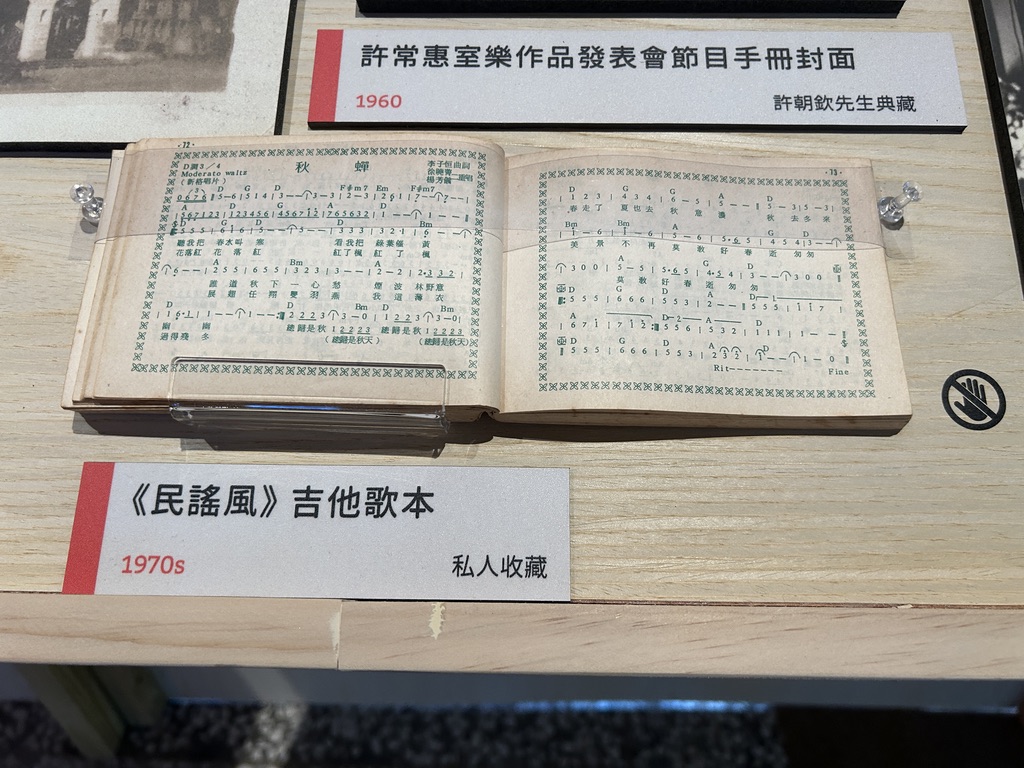 1970 年代的台北,那時的年輕人,不再只翻唱西洋歌,而是開始用自己的語言,唱出屬於青春、土地與夢想的歌。民歌西餐廳像雨後春筍般出現,桌上放著一疊點歌單,客人可以親手把想聽的歌遞給台上的歌手,好像每一首歌都是現場專屬的回憶。展區裡也播放著《金韻獎》和《民謠風》的經典聲音,李宗盛、齊豫、蔡琴的歌聲在耳邊響起。我爸媽大概又是這個年代的人,他們年輕時都是聽校園民歌,身邊也有朋友參加過當時的比賽,我自己也覺得有些民歌都蠻好聽的。