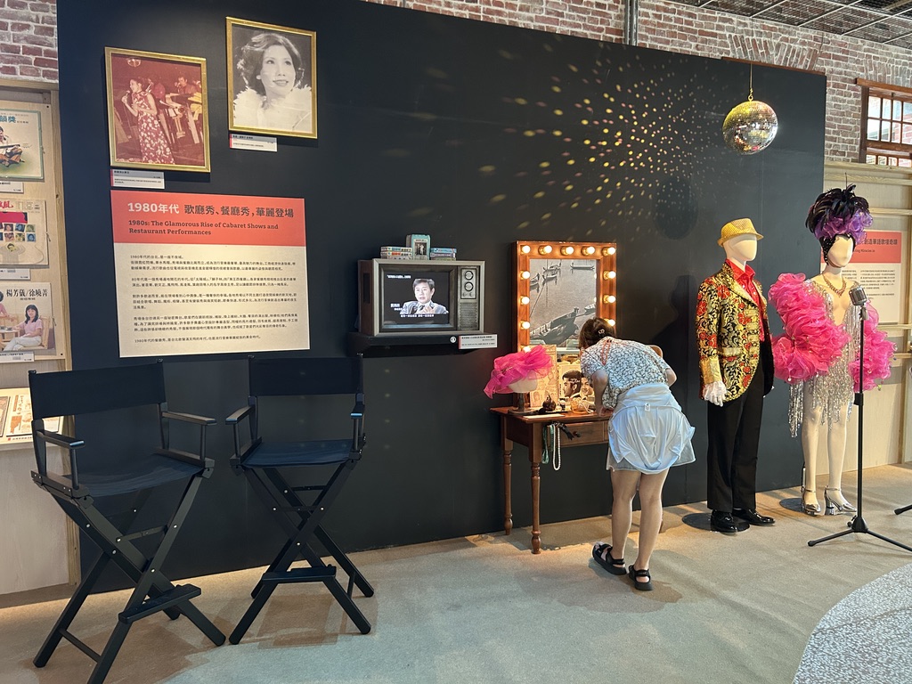 1980 年代的台北,是一座真正的不夜城。霓虹閃爍、車水馬龍,秀場與餐廳林立,成為流行音樂最華麗的舞台。經濟快速起飛,太陽城、力歐西餐廳、東王餐廳等秀場遍地開花,巨星雲集如崔苔菁、劉文正、鳳飛飛、葉啟田…名字一亮出就讓觀眾搶著排隊,只為親眼目睹偶像風采。這個展區有復古的舞台服、亮片禮服、羽毛披肩等,讓人彷彿回到那個歌聲與舞姿同樣奪目的年代。