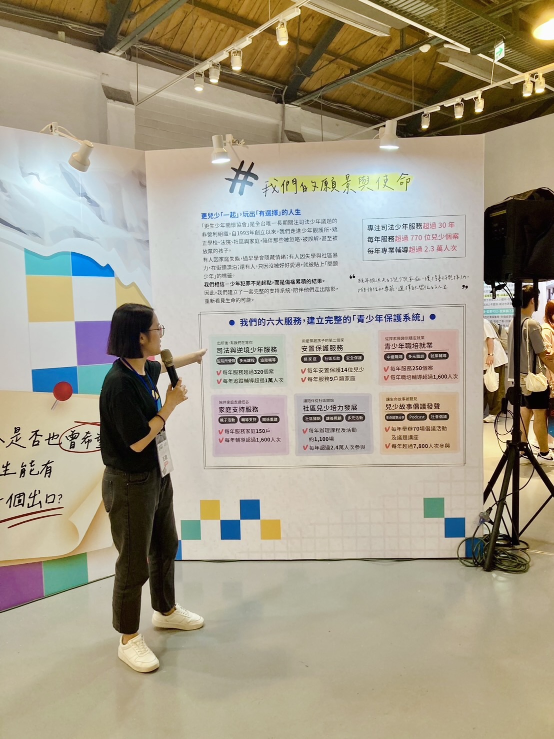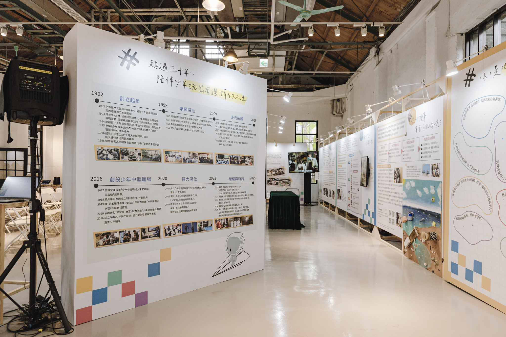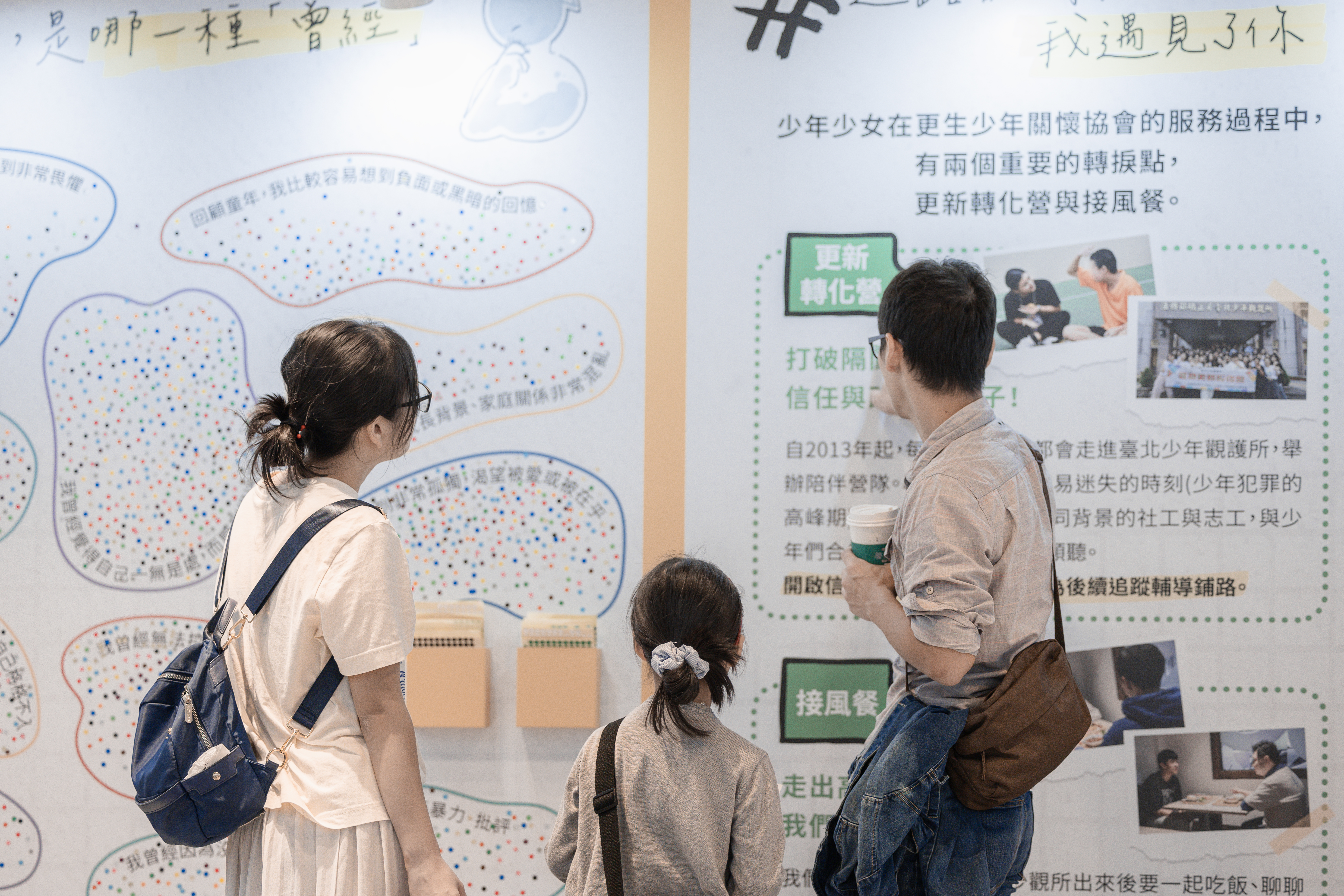 展區接近尾巴,我們展出幾個不同年代的故事,並呈現更生少年關懷協會的服務介紹: