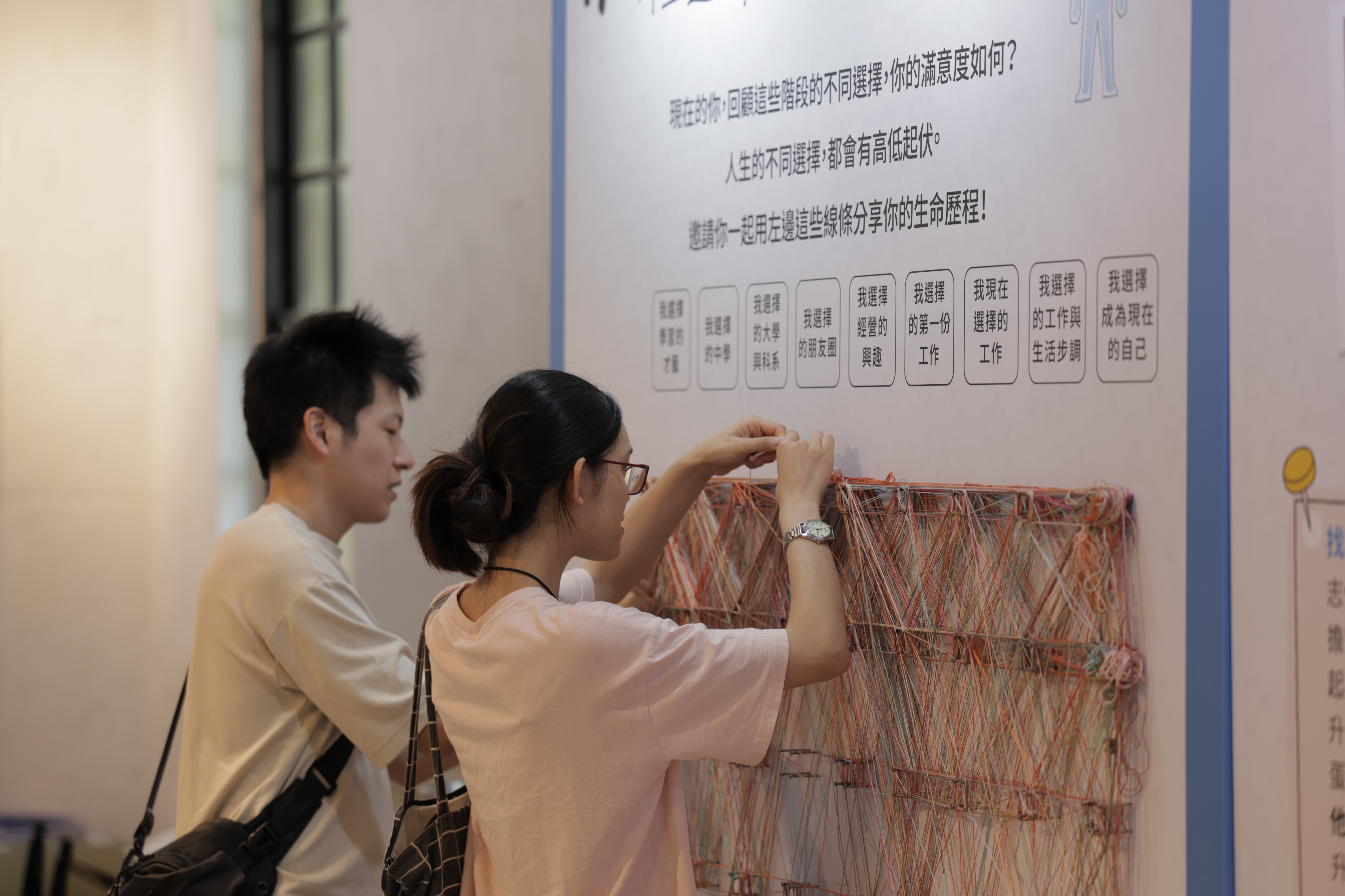 你可以拿起一條線,從「人生起點」一路拉到不同的節點:選擇的大學科系、轉換的工作、重要的關係……慢慢綁出屬於自己的選擇歷程。